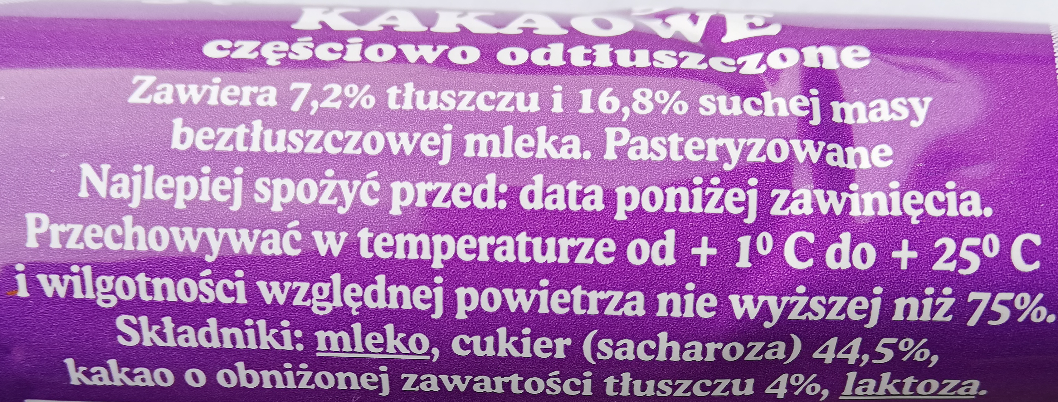 | Składniki | Mleko, cukier(sacharoza)44,5%, kakao o obniżonej zawartości tłuszczu, laktoza |