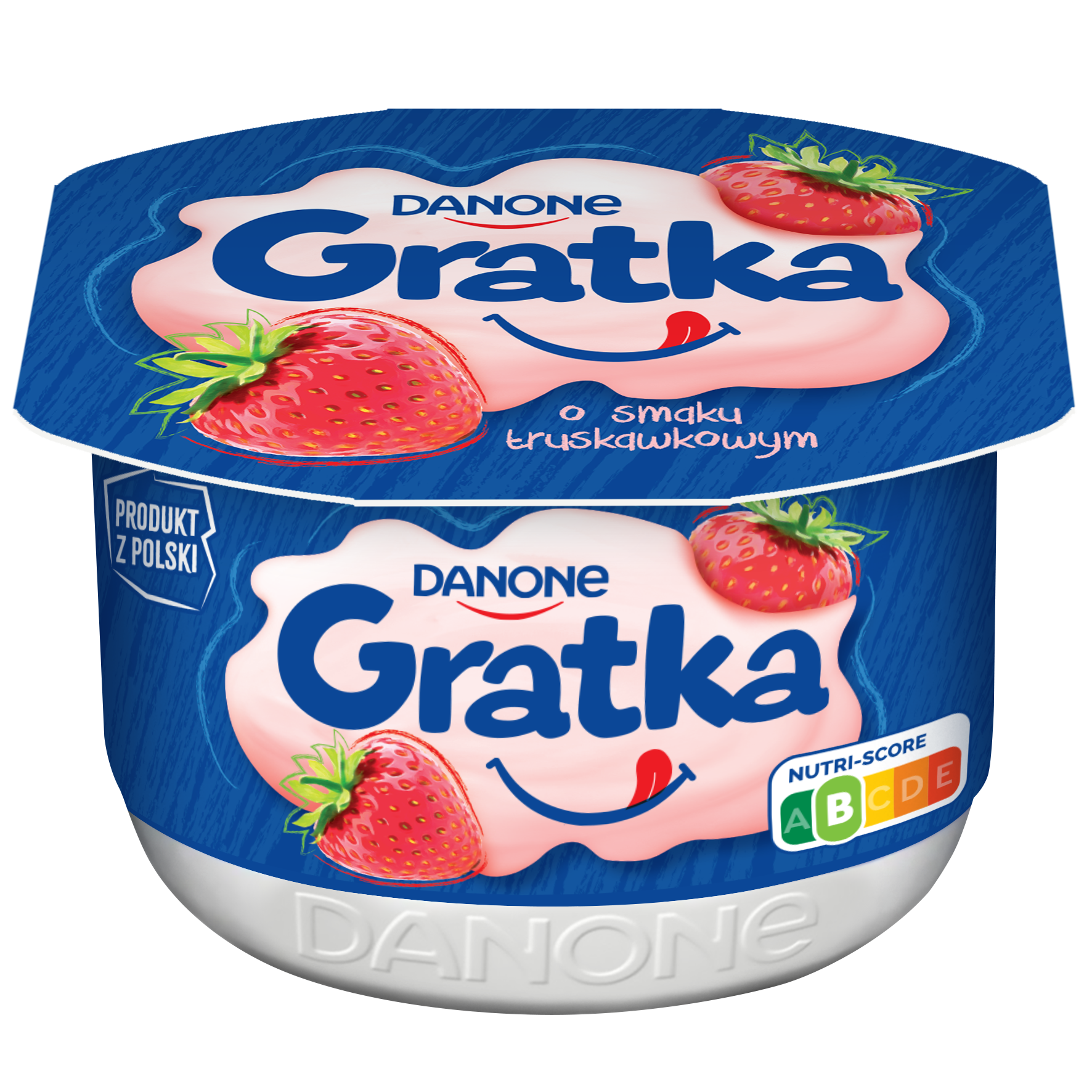 | Składniki | Mleko odtłuszczone (34%), serwatka odtworzona (z mleka), woda, cukier, śmietanka, skrobia modyfikowana, żelatyna, żywe kultury bakterii, aromat, proszek truskawkowy, barwnik: karmin. może zawierać zboża zawierające gluten, jaja. |
