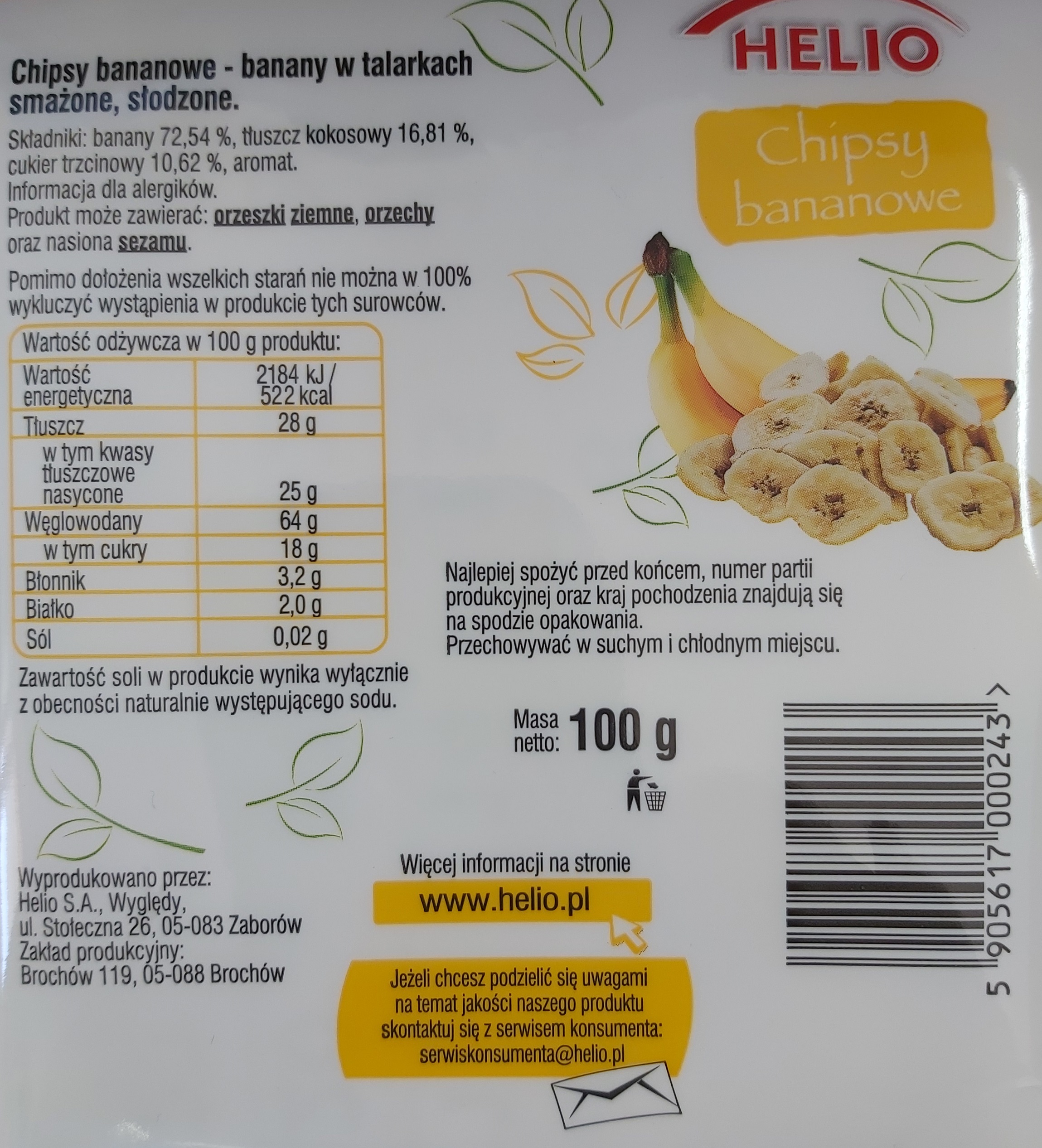 Helio chipsy bananowe 100 g