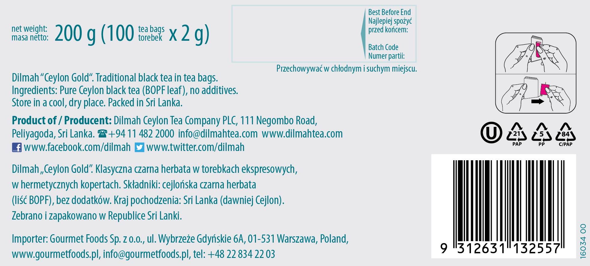 Herbata Ceylon Gold Dilmah 100 x 2 g