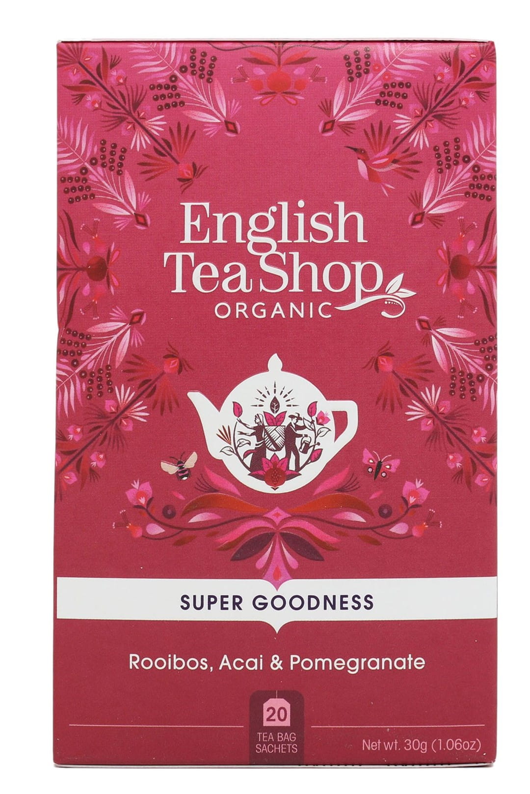 Mieszanka składników superfood: bezteinowego południowoafrykańskiego rooibosa, słodkiej jogody acai i granatu