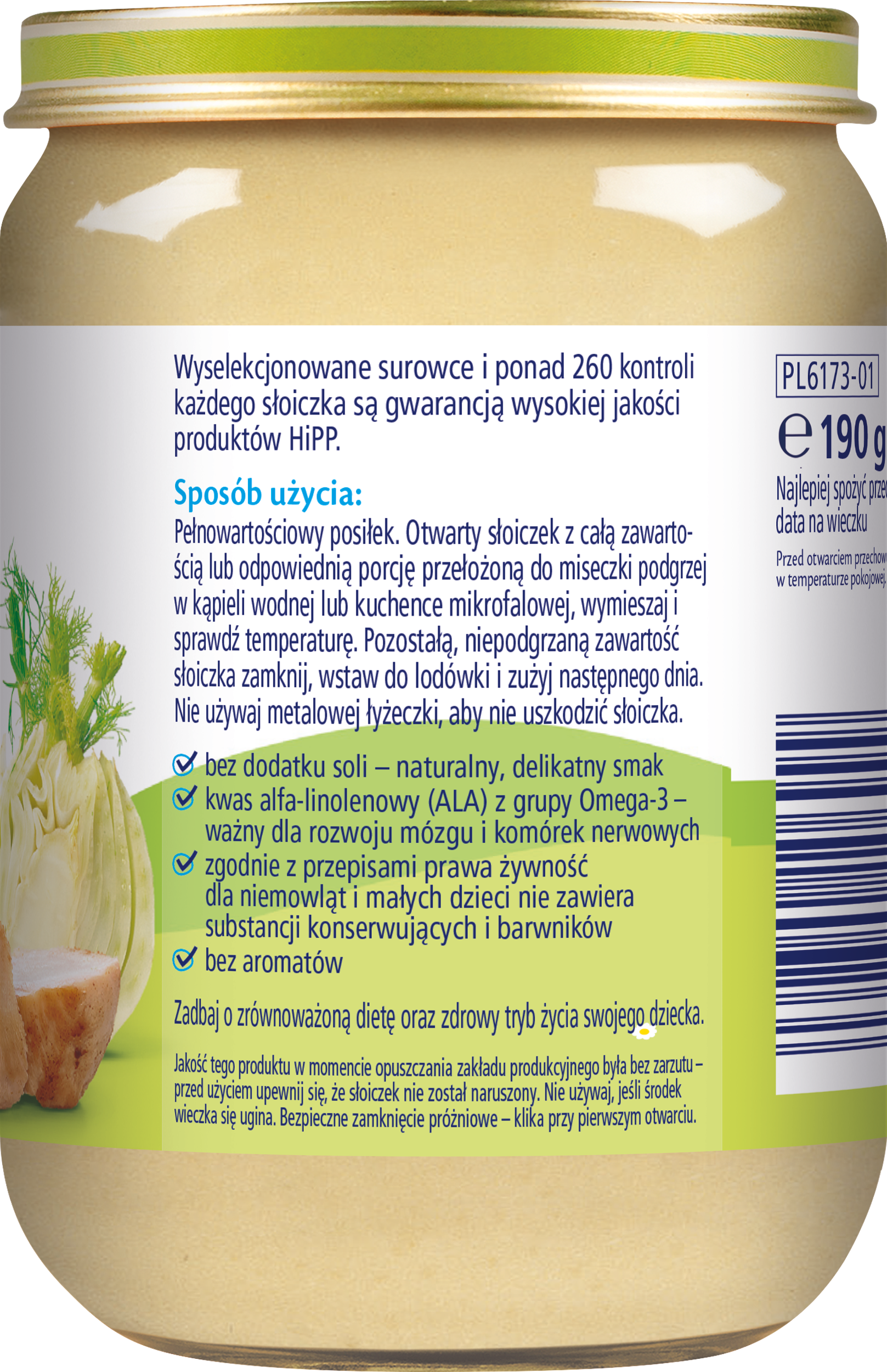 | Instrukcje dotyczące przygotowania | Sposób użycia: otwarty słoiczek z całą zawartością lub odpowiednią porcję przełożoną do miseczki podgrzej w kąpieli wodnej lub kuchence mikrofalowej, wymieszaj i sprawdź temperaturę. pozostałą, niepodgrzaną zawartość słoiczka zamknij, wstaw do lodówki i zużyj następnego dnia. nie używaj metalowej łyżeczki, aby nie uszkodzić słoiczka. jakość tego produktu w momencie opuszczania zakładu produkcyjnego była bez zarzutu - przed użyciem upewnij się, że słoiczek nie został naruszony. nie używaj, jeśli środek wieczka się ugina. bezpieczne zamknięcie próżniowe - klika przy pierwszym otwarciu. |