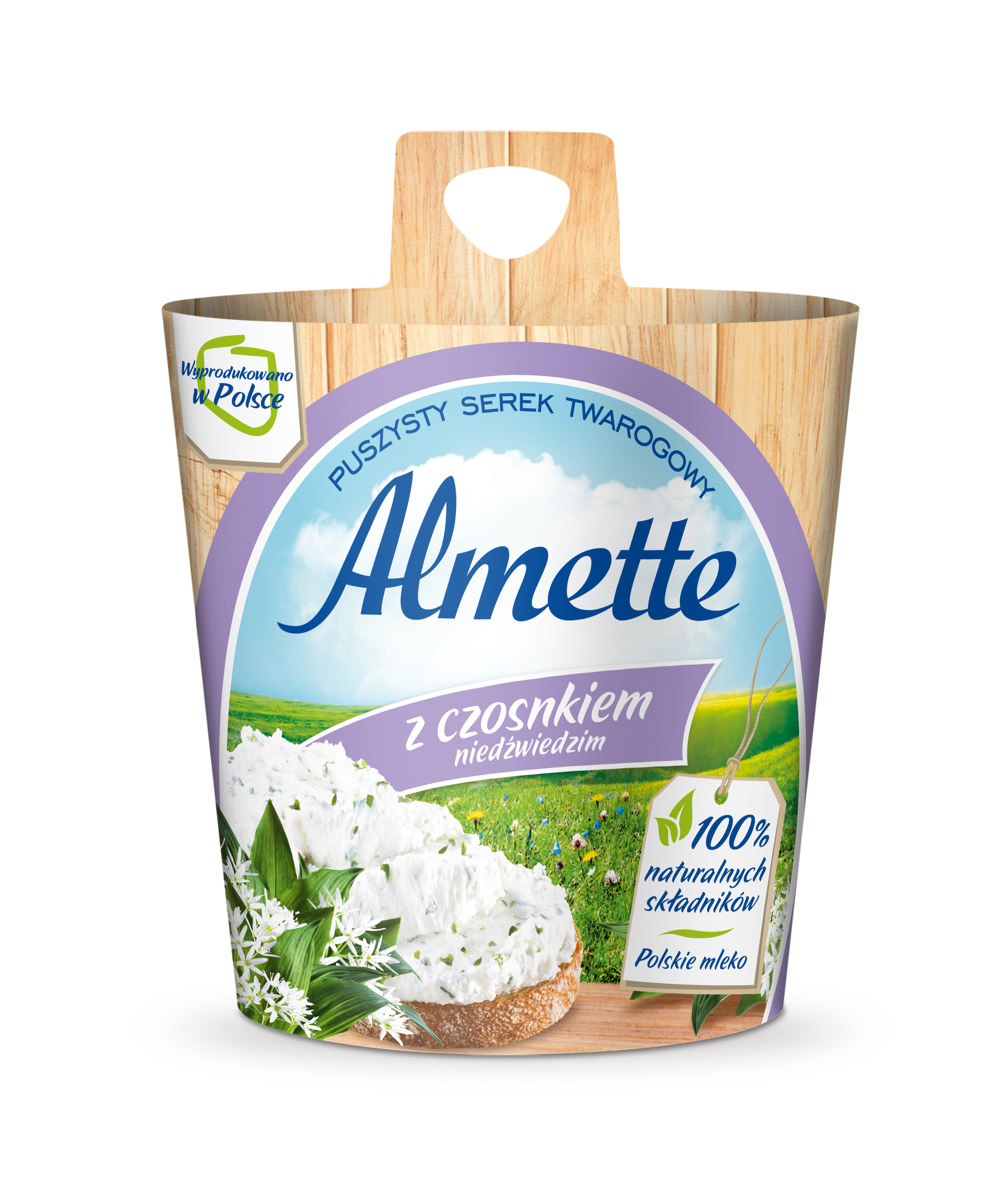 Almette no najpopularniejszy puszysty serek twarogowy, którego sekret tkwi w najwyższej jakości starannie dobranych składnikach oraz świeżości. Almette zgodnie z oczekiwaniami konsumentów oferuje szeroką gamę niepowtarzalnych wariantów smakowych: dziesięć serków twarogowych z dodatkiem warzyw lub aromatycznych ziół oraz trzy puszyste owocowe serki z nowej linii Almette Fruit. Produkty Almette nie zawierają zagęstników, barwników ani konserwantów.