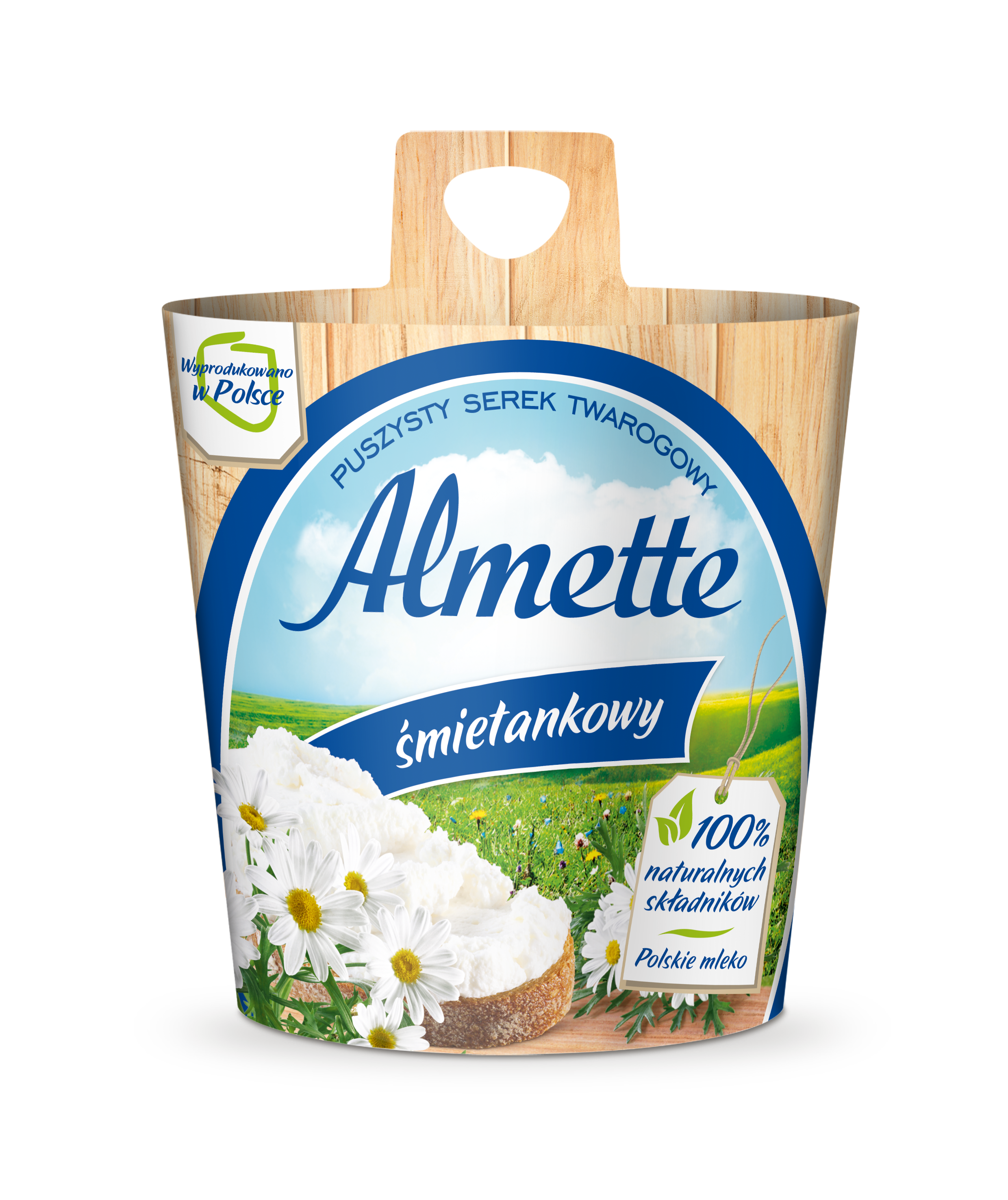 Almette no najpopularniejszy puszysty serek twarogowy, którego sekret tkwi w najwyższej jakości starannie dobranych składnikach oraz świeżości. Almette zgodnie z oczekiwaniami konsumentów oferuje szeroką gamę niepowtarzalnych wariantów smakowych: dziesięć serków twarogowych z dodatkiem warzyw lub aromatycznych ziół oraz trzy puszyste owocowe serki z nowej linii Almette Fruit. Produkty Almette nie zawierają zagęstników, barwników ani konserwantów.
