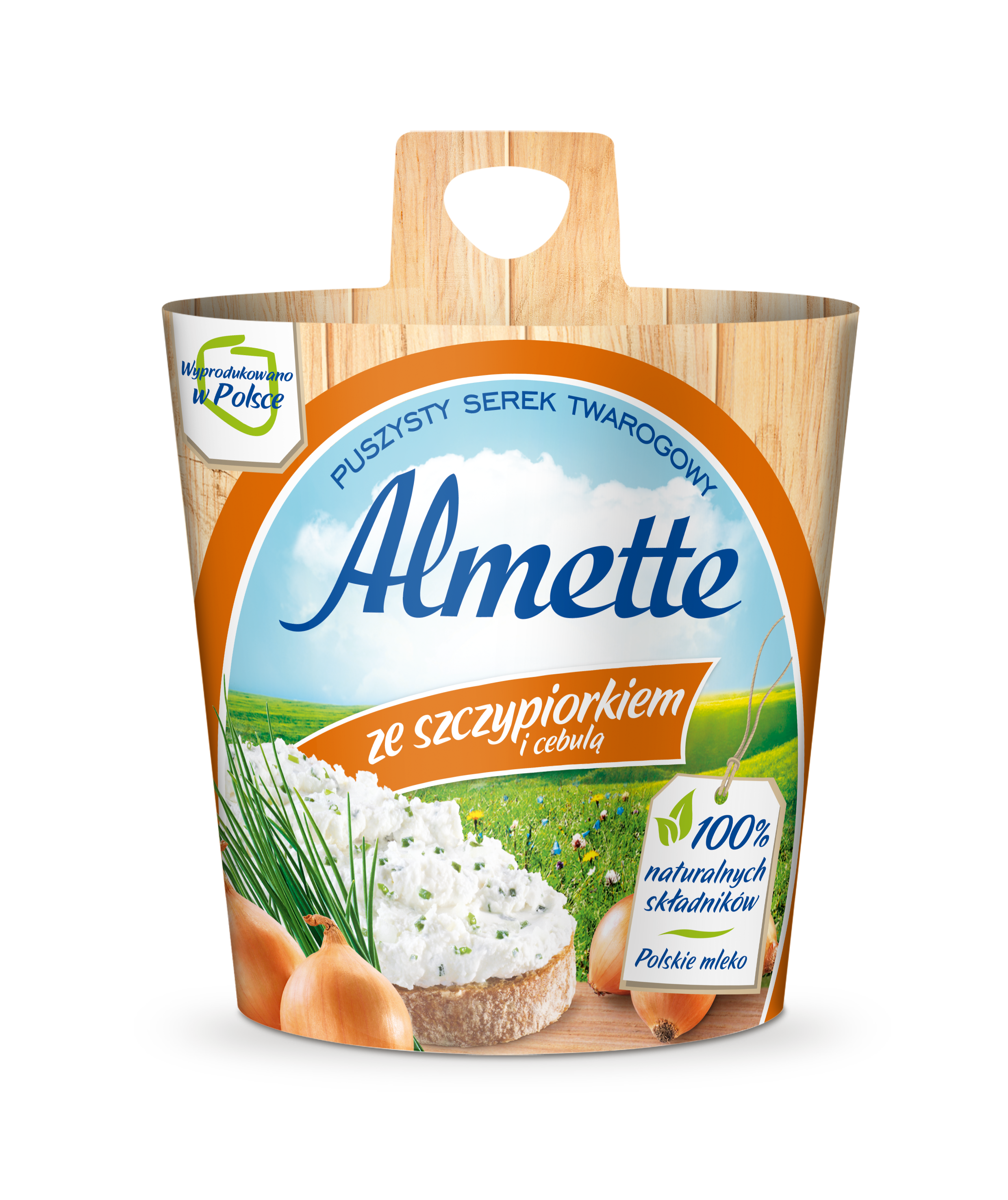 Almette no najpopularniejszy puszysty serek twarogowy, którego sekret tkwi w najwyższej jakości starannie dobranych składnikach oraz świeżości. Almette zgodnie z oczekiwaniami konsumentów oferuje szeroką gamę niepowtarzalnych wariantów smakowych: dziesięć serków twarogowych z dodatkiem warzyw lub aromatycznych ziół oraz trzy puszyste owocowe serki z nowej linii Almette Fruit. Produkty Almette nie zawierają zagęstników, barwników ani konserwantów.