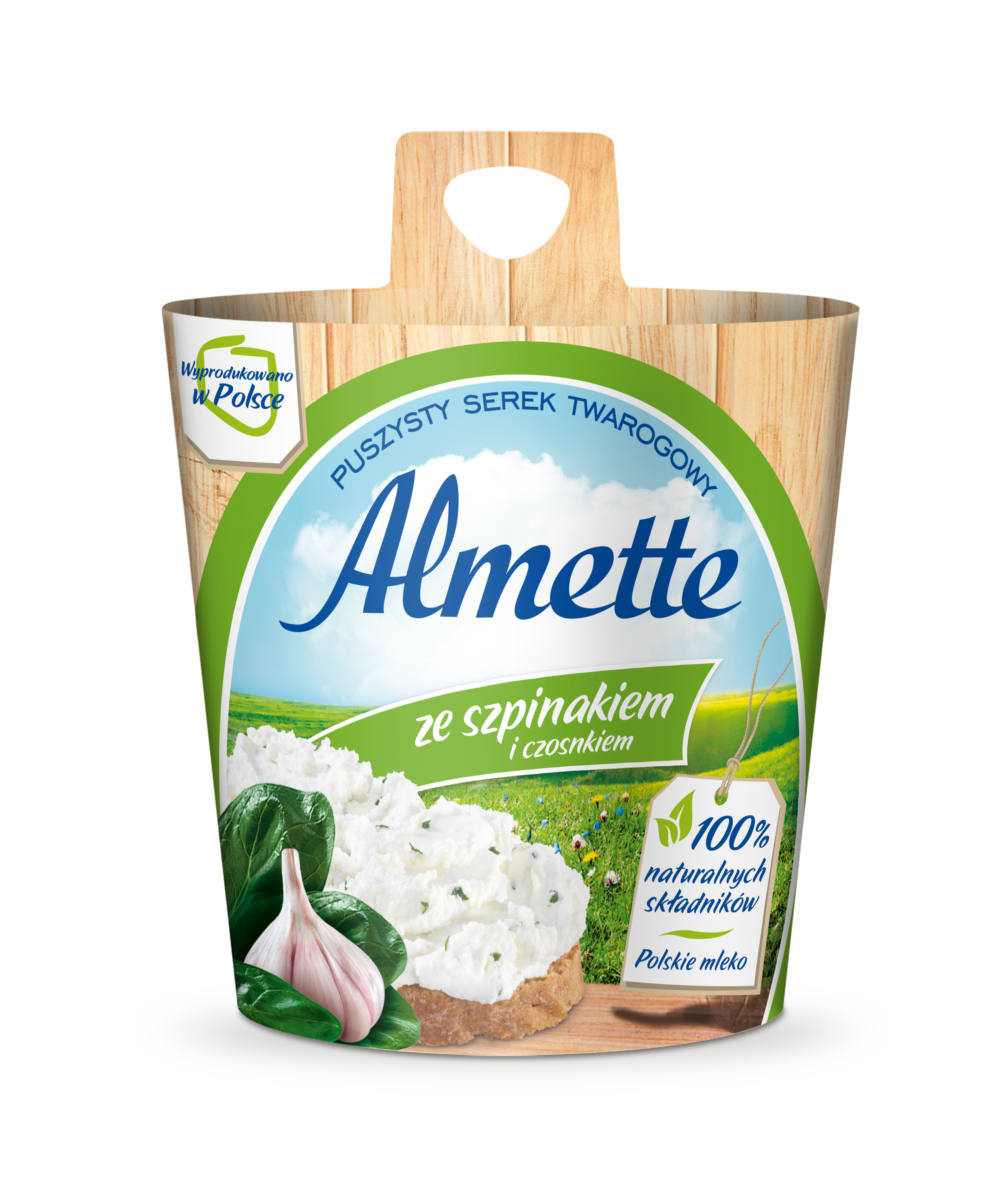 | Składniki | ser twarogowy, odtłuszczone mleko w proszku, sól, szpinak (0,6%), czosnek niedźwiedzi, regulator kwasowości: kwas cytrynowy, ekstrakt przypraw, cebula, czosnek (0,2%) |