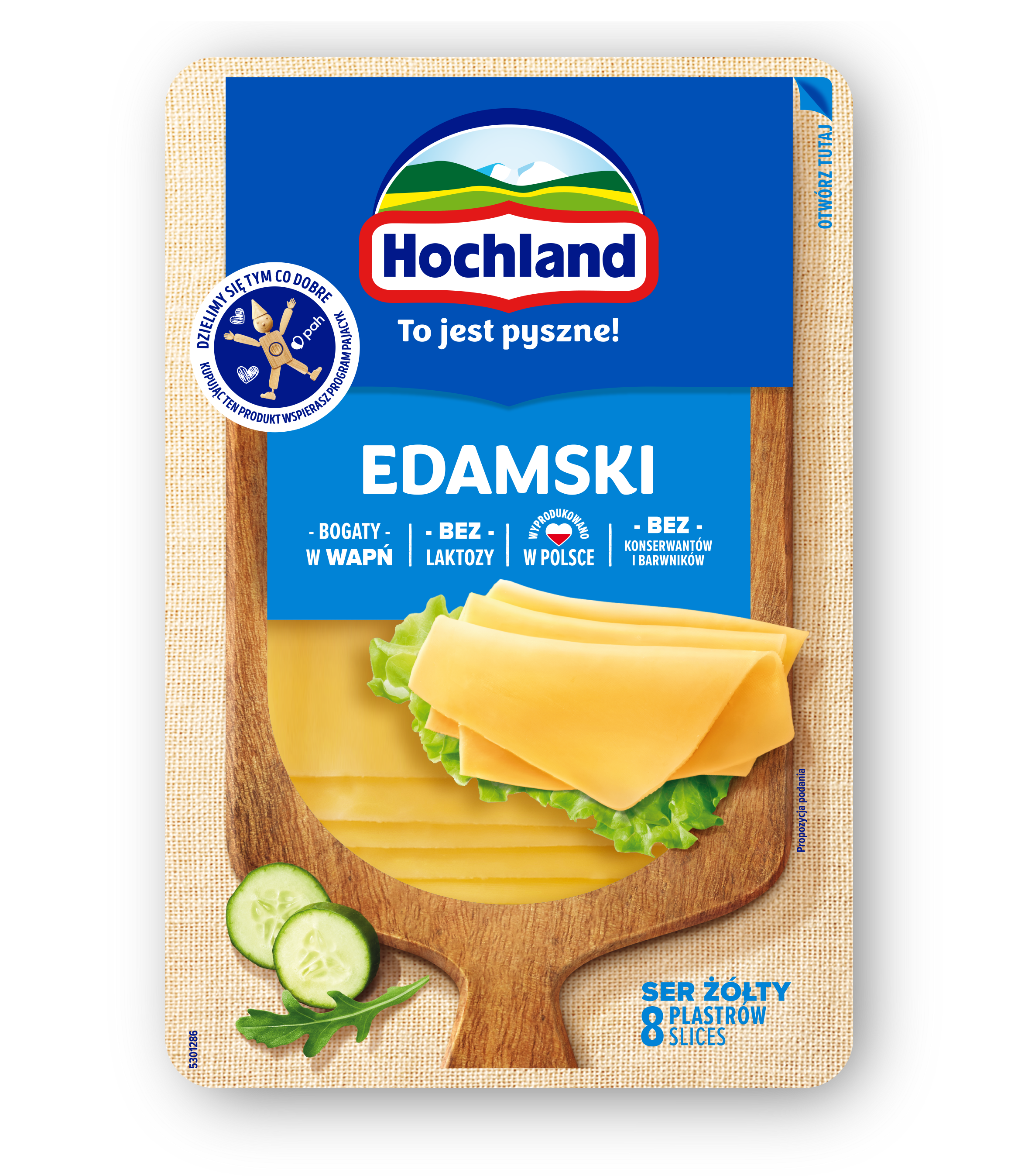 Hochland Edamski ser żółty w plastrach. Ser podpuszczkowy dojrzewający