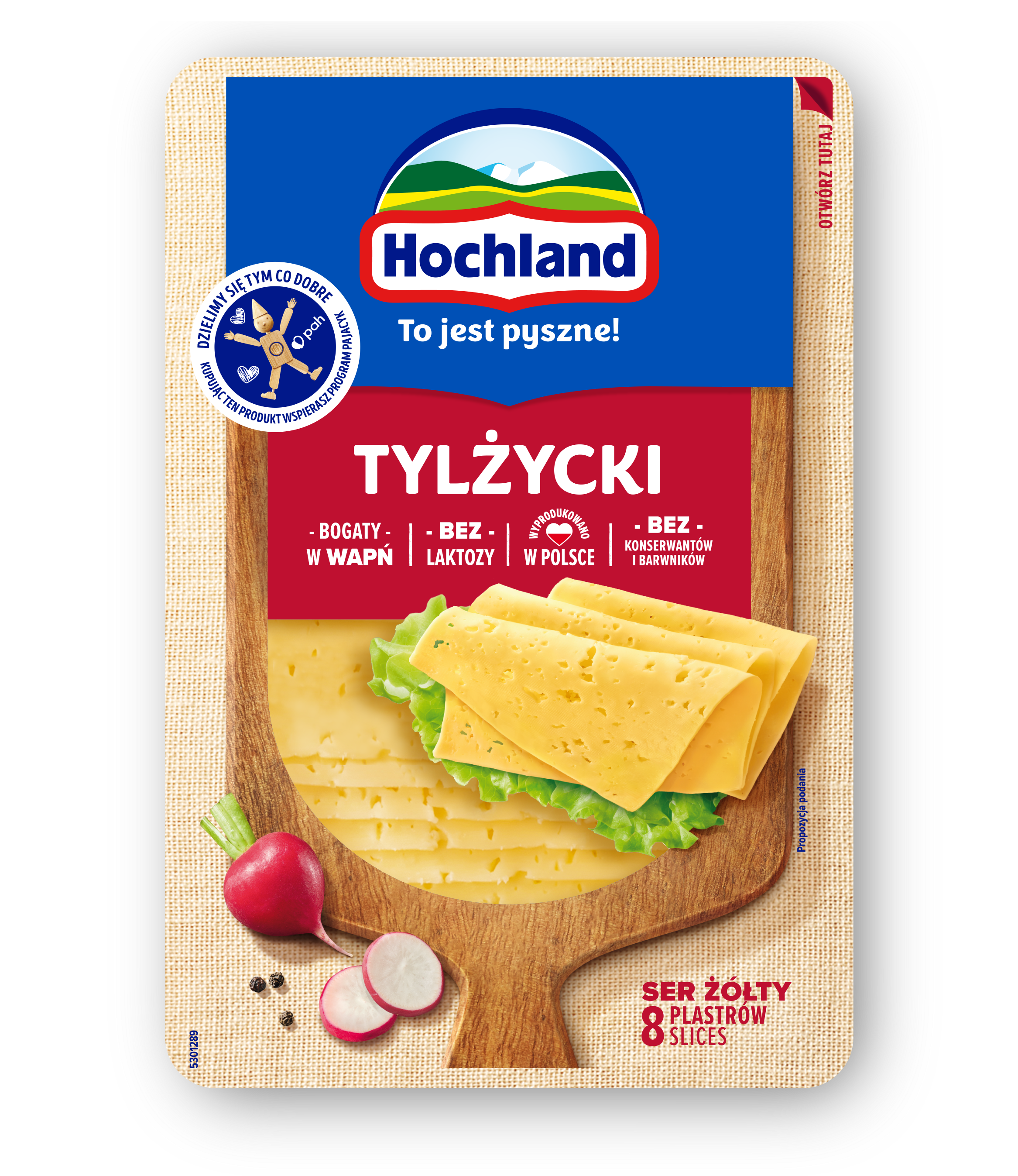 Hochland Tylżycki ser żółty w plastrach. Ser podpuszczkowy dojrzewający.
