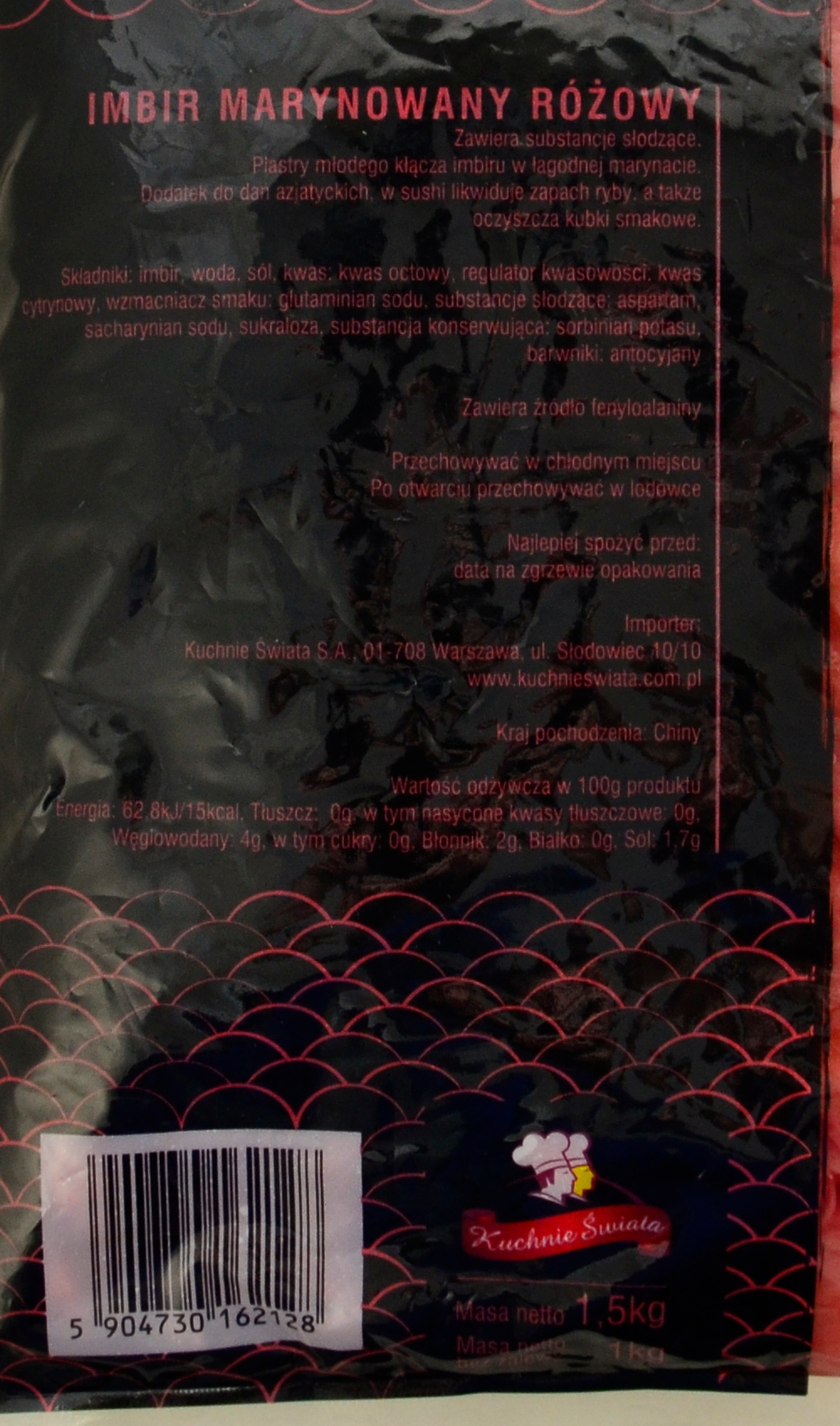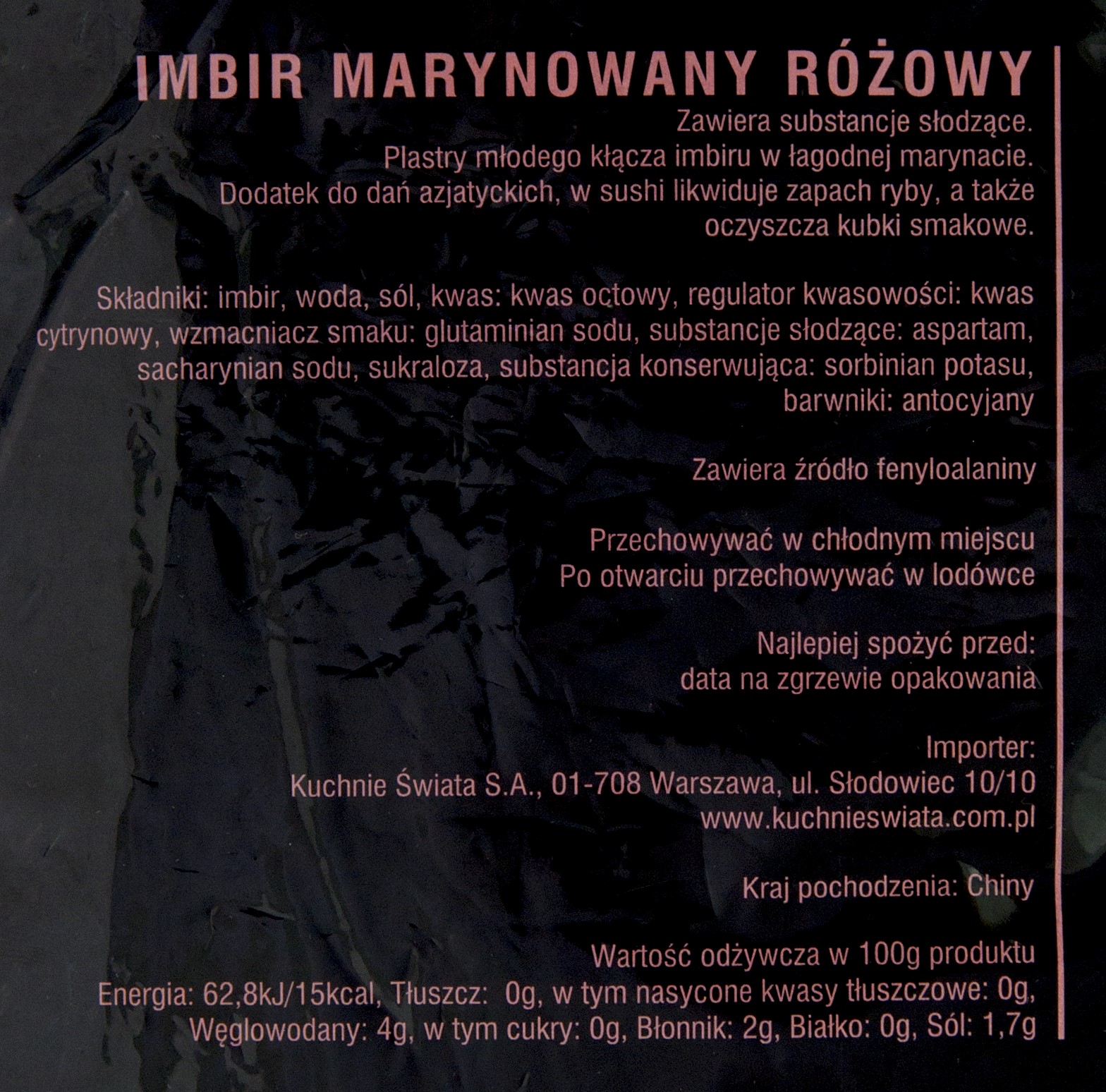 Plastry barwionego młodego kłącza imbiru w łagodnej marynacie