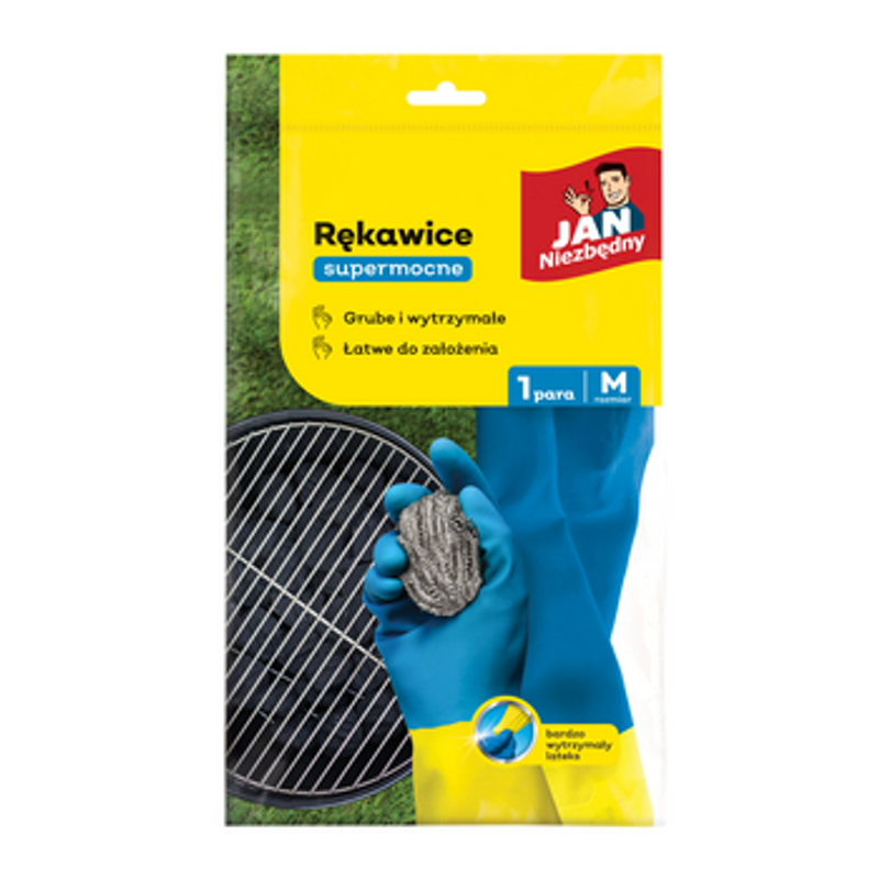 Rękawice supermocne Jan Niezbędny, rozmiar M, 1 para, są doskonałe do mycia naczyń z trudnymi zabrudzeniami.