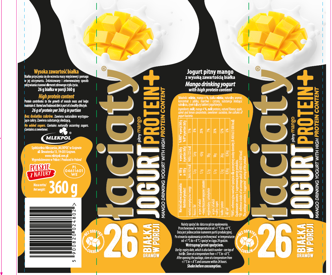 Jogurt łaciaty pitny mango protein plus butelka pet sm mlekpol 360 g