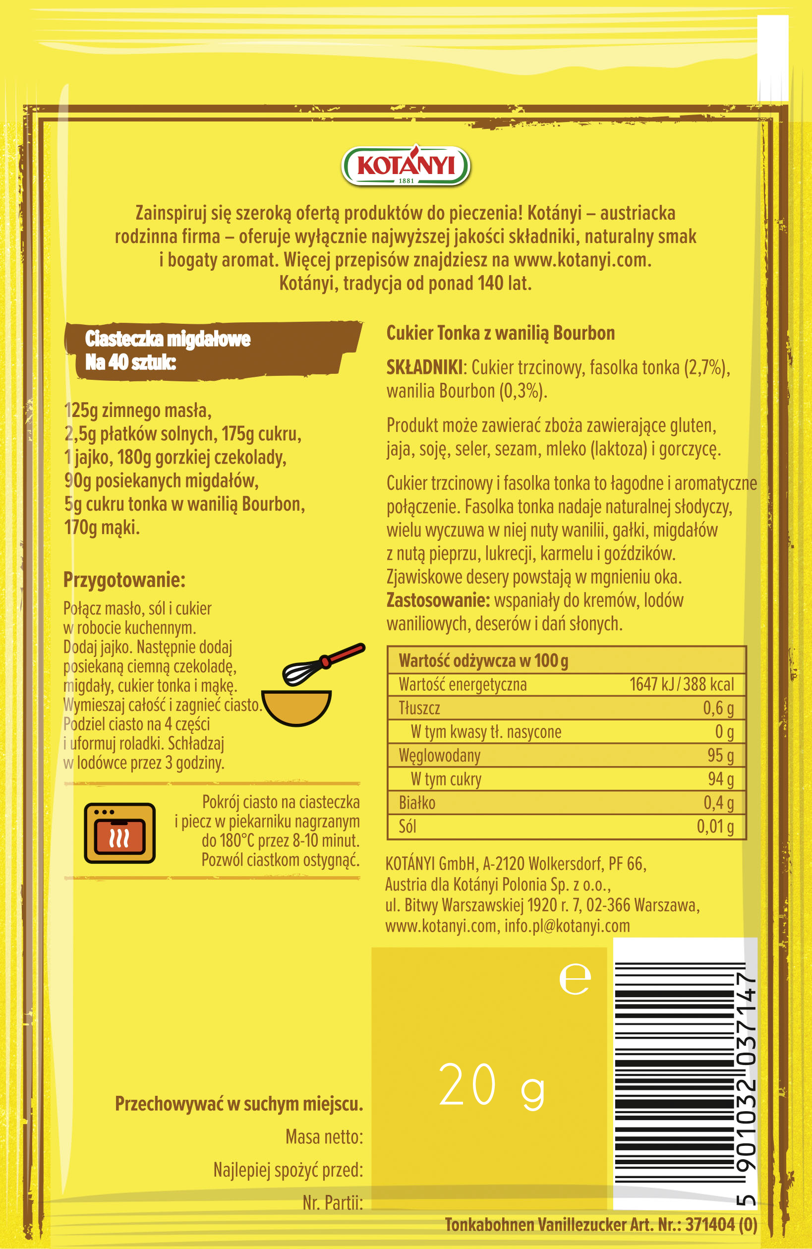 KOTANYI cukier Tonka z wanilią Bourbon 20 g