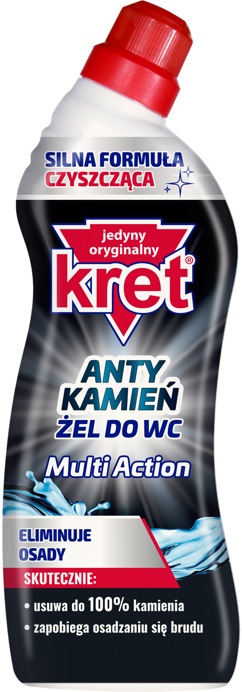 Kret Żel do WC ANTYKAMIEŃMulti Action -żel z wysoką zawartością składnika aktywnego zapewnia skuteczne usuwanie kamienia i chroni toaletę przed osadzaniem się brudu. Receptura oparta na kwasie mrówkowym – super silna formuła odkamieniająca.