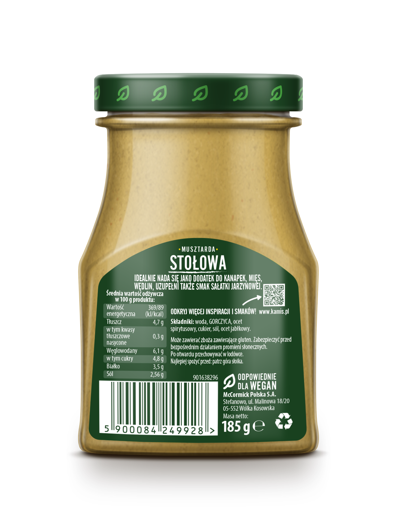Musztarda stołowa to łagodna wersja klasycznej musztardy. Swoim delikatnym, lekko słodkawym smakiem z kwaskową nutą podkreśli zarówno smak dań warzywnych, jak i mięsnych. Idealna do zapiekanek piknikowych, ziemniaczanych i sałatek. Możesz dodać ją do ciepłych i zimnych sosów, na przykład: musztardowego, pieczeniowego, czy beszamelu. Możesz stworzyć na jej bazie aromatyczny dip do grillowanych warzyw i mięs. Doskonale sprawdzi się z piklami na kanapce i w burgerze.