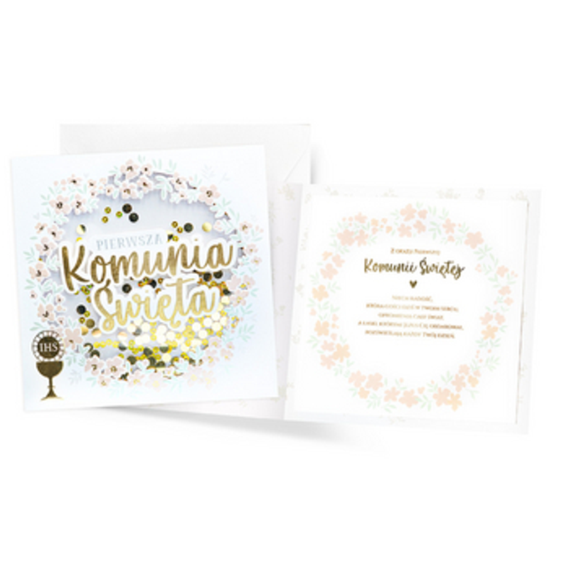 Kartki z serii Primus, to kartki najwyższej jakości, pięknie zdobione m.in złotą lub srebrną folią, tłoczeniami, czy wycinkami laserowymi. Idealne na najważniejsze okazje w życiu, takie jak ślub, komunia. W środku każdej kartki znajdują się dobrane do okazji życzenia, a do kartki dołączona jest dopasowana koperta. Cechy szczególne: wielkość: niestandardowa, prostokątna, kwadratowa, zdobienia: dekoracje ze złotej folii, doklejane koraliki, tłoczenia koperta: dopasowana w komplecie, wnętrze kartki: życzenia w środku, okazja: komunia