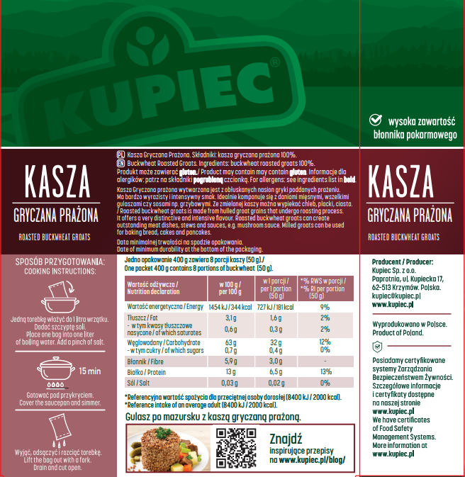 | Składniki | kasza gryczana |
