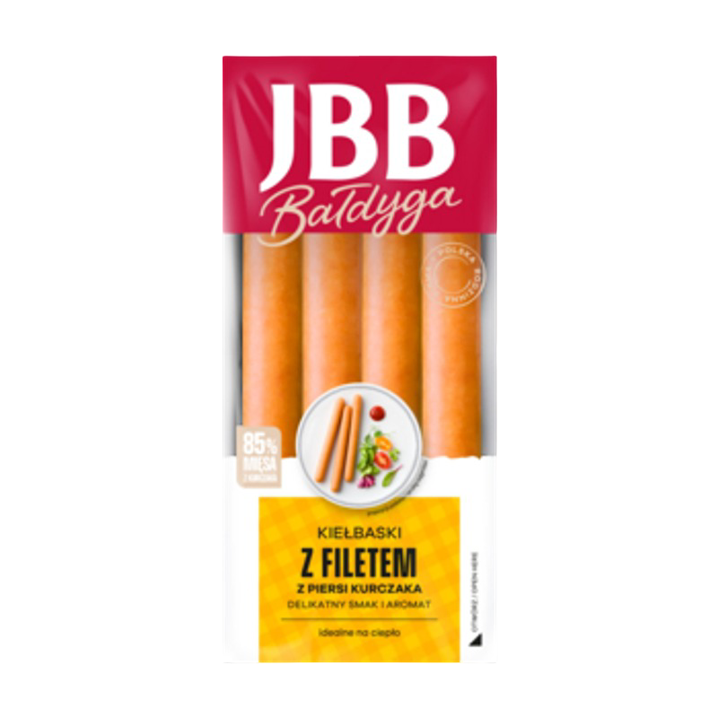 | Składniki | Mięso z kurczaka 85 % (w tym filet z piersi kurczaka 65 %), woda, skrobia ziemniaczana, sól, stabilizatory: trifosforany, polifosforany; białko sojowe, regulatory kwasowości: cytryniany sodu, octany sodu; glukoza, laktoza (z mleka), wzmacniacz smaku: glutaminian monosodowy; czosnek, ekstrakty warzyw, ekstrakty przypraw, hydrolizowane białko kukurydziane, aromaty, aromaty dymu wędzarniczego, przeciwutleniacz: askorbinian sodu; substancja konserwująca: azotyn sodu. produkt może zawierać: zboża zawierające gluten (pszenica, owies), jaja, seler i gorczycę. |