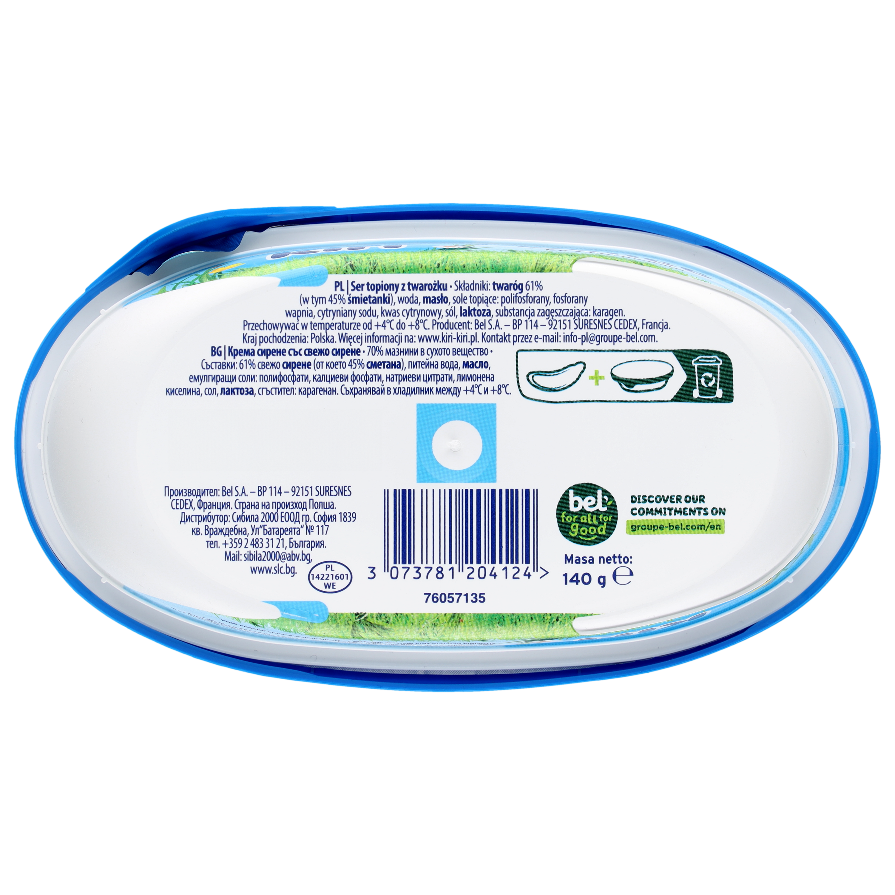 | Składniki | Twaróg 61% (w tym 45% śmietanki), woda, masło, sole topiące: polifosforany, fosforany wapnia, cytryniany sodu, kwas cytrynowy, sól, laktoza, substancja zagęszczająca : karagen. |