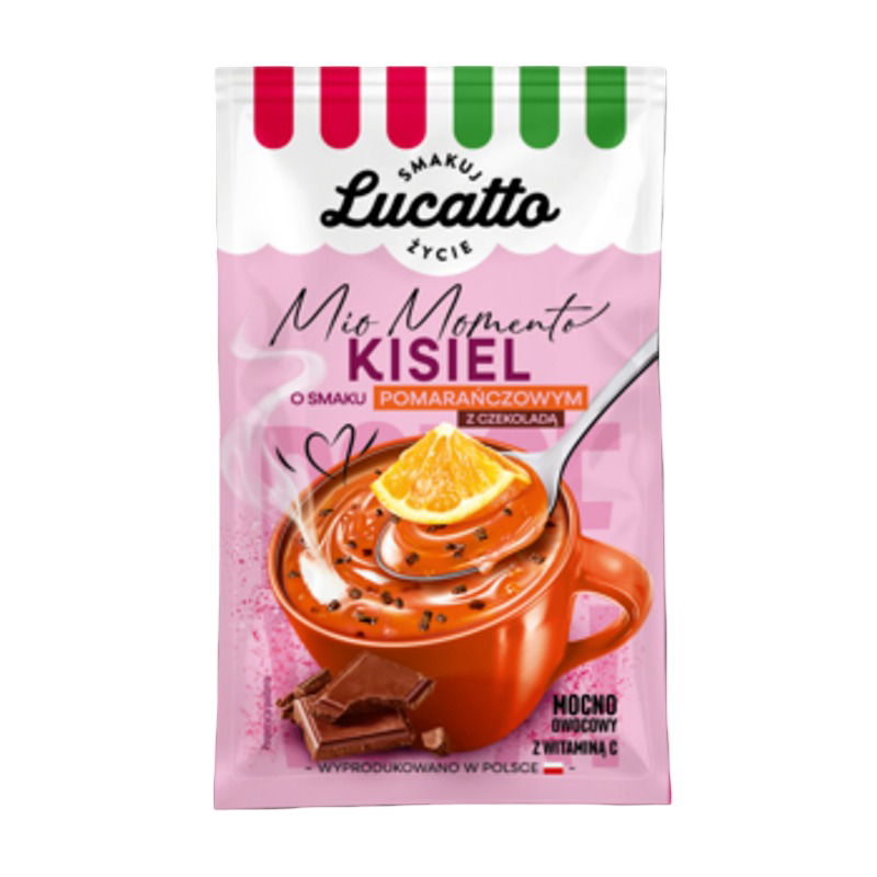 Kisiel instant o smaku pomarańczy z kawałkami czekolady przygotujesz w kilka chwil – wystarczy 175 ml wrzątku.