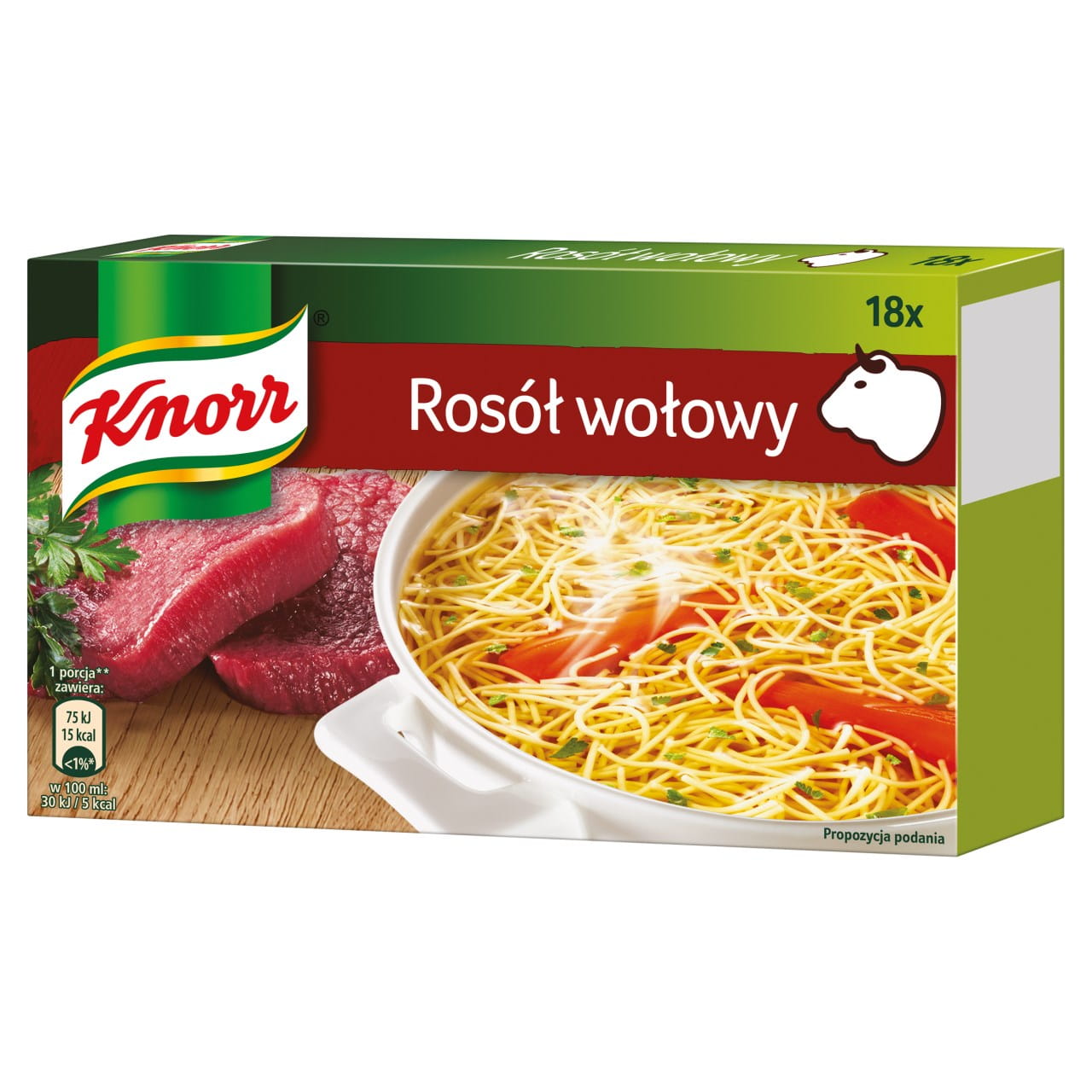 | Składniki | Sól, wzmacniacze smaku: glutaminian monosodowy, inozynian disodowy i guanylan disodowy ; tłuszcz palmowy, skrobia, aromaty, tłuszcz palmowy całkowicie uwodorniony, mięso wołowe (2%), nasiona selera, gałka muszkatołowa, kurkuma, marchew (0,4%), natka pietruszki (0,3%), kwas: kwas winowy (l(+)-) |