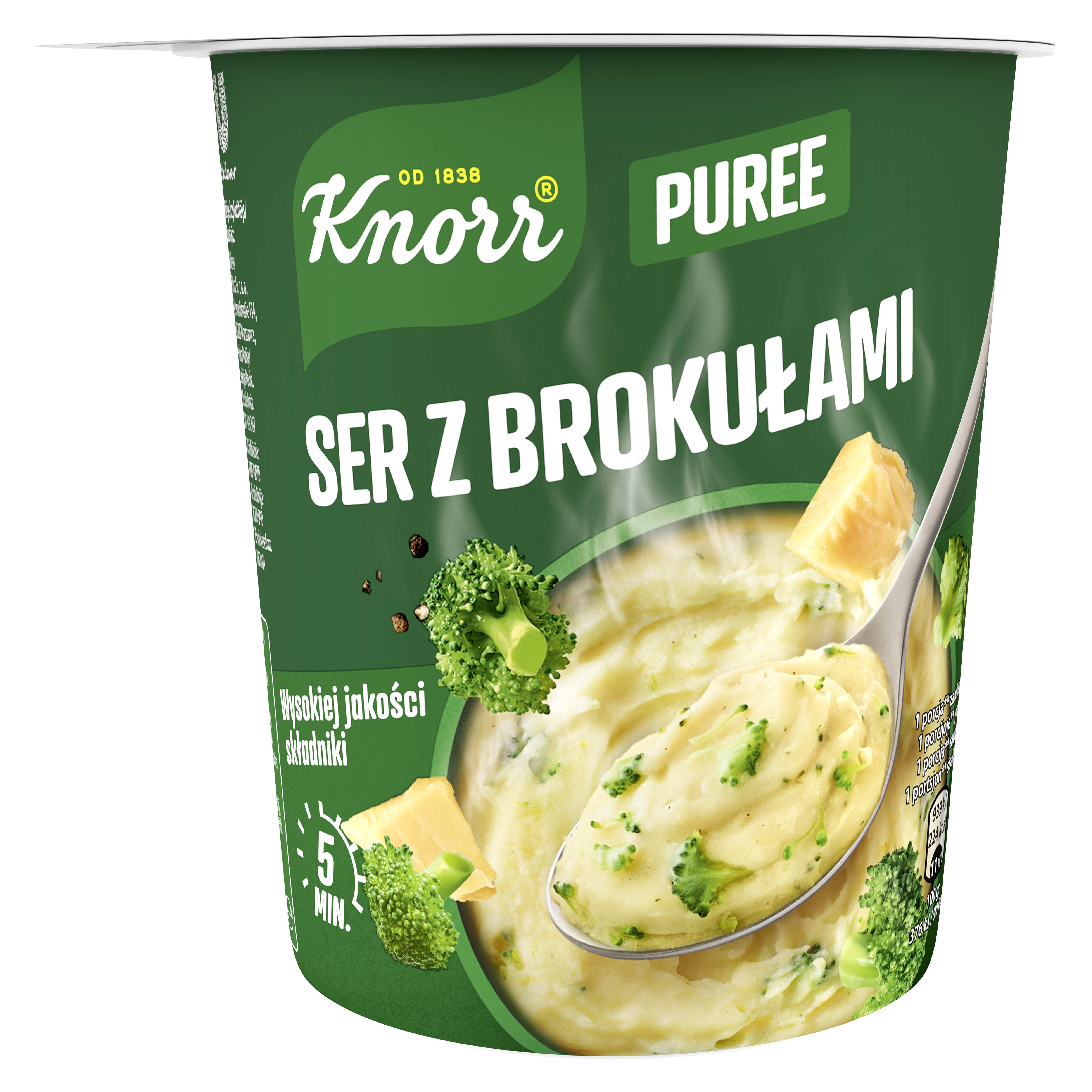 | Składniki | ziemniaki (59%),olej słonecznikowy, SER topiony (7,5%) [SER, preparat serwatkowy (MLEKO)], ŚMIETANA (6%), LAKTOZA, cebula, brokuły (2%), sól jodowana, tłuszcz palmowy, aromaty, białka MLEKA, czosnek, pieprz, kurkuma, sól, maltodekstryna, emulgator: mono- i diglicerydy kwasów tłuszczowych; skrobia. Może zawierać jaja, seler i zboża (gluten). |