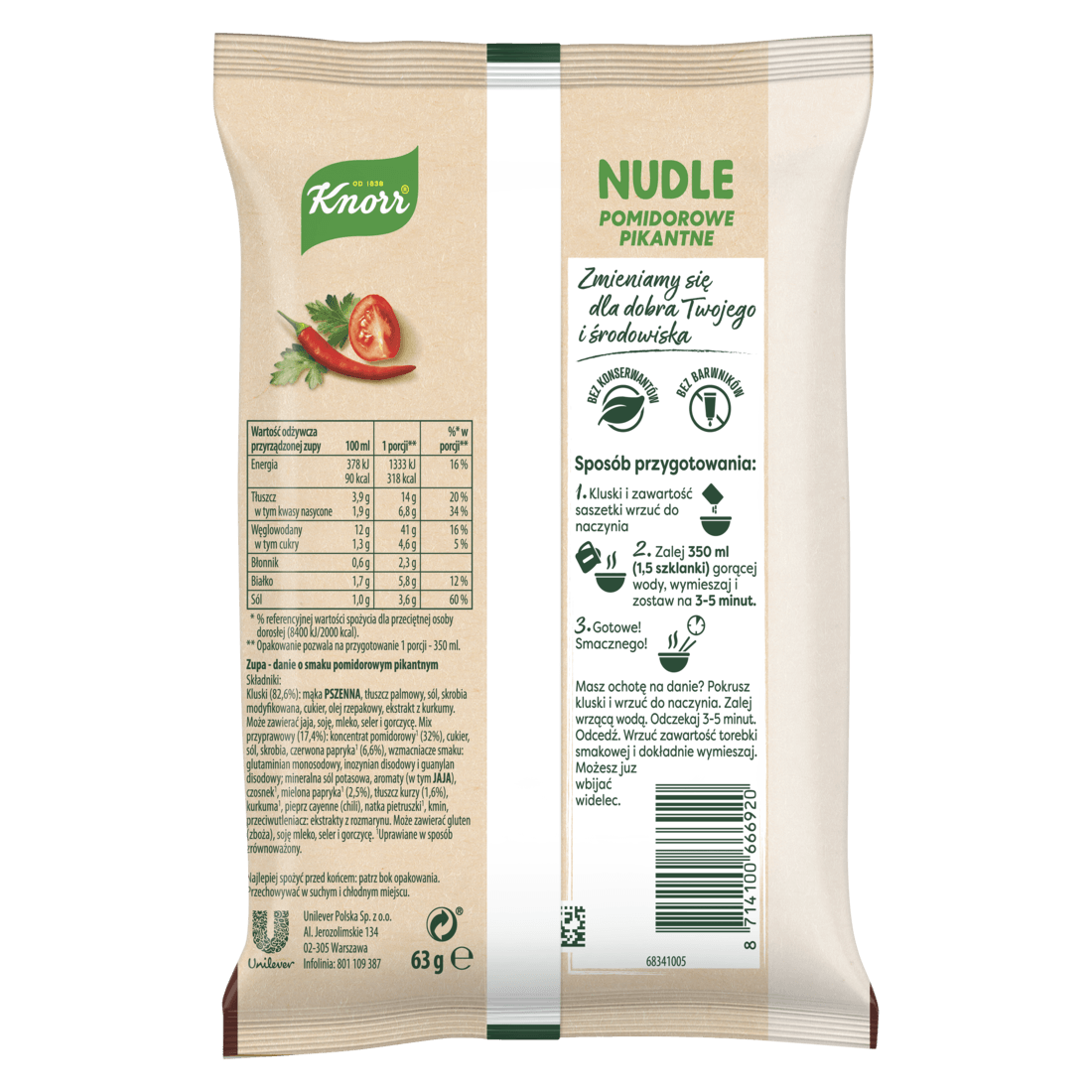 | Składniki | kluski (82,6%): mąka pszenna, tłuszcz palmowy, sól, skrobia modyfikowana, cukier, olej rzepakowy, ekstrakt z kurkumy, |