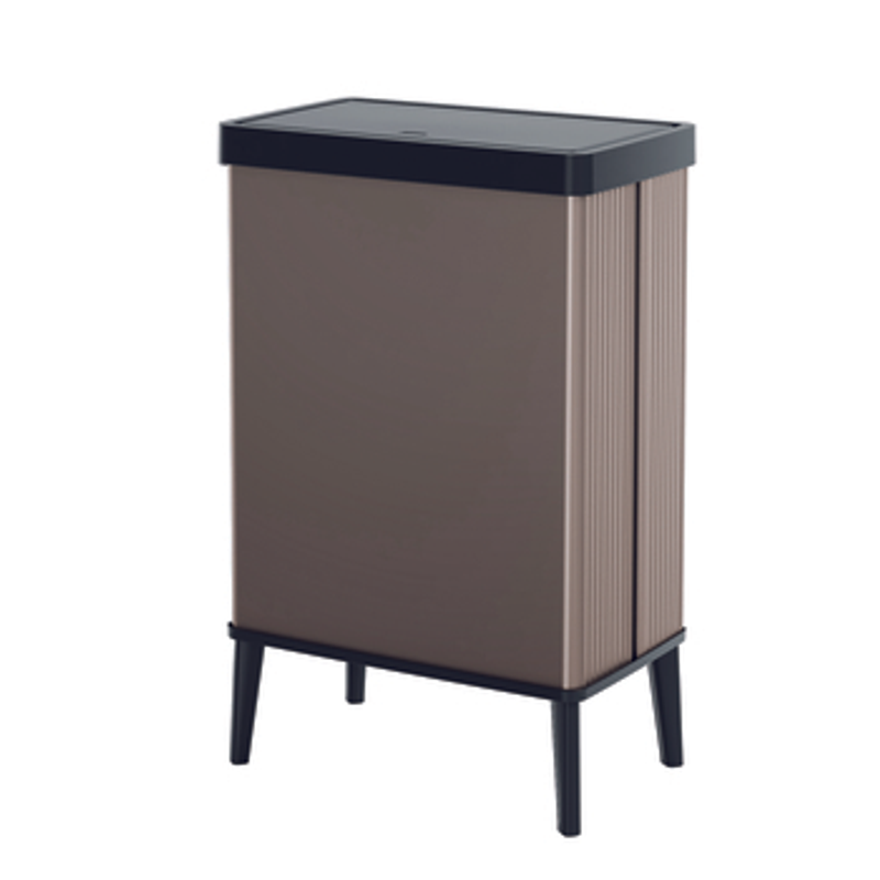 Kosz ma pojemność 54L i szeroką pokrywę z funkcją otwierania za pomocą dotyku, a worek na śmieci można dyskretnie ukryć wewnątrz. Wysokie nóżki zapewniają dodatkową przestrzeń pod koszem, ułatwiając sprzątanie, a także umożliwiają wygodną obsługę bez konieczności schylania się.