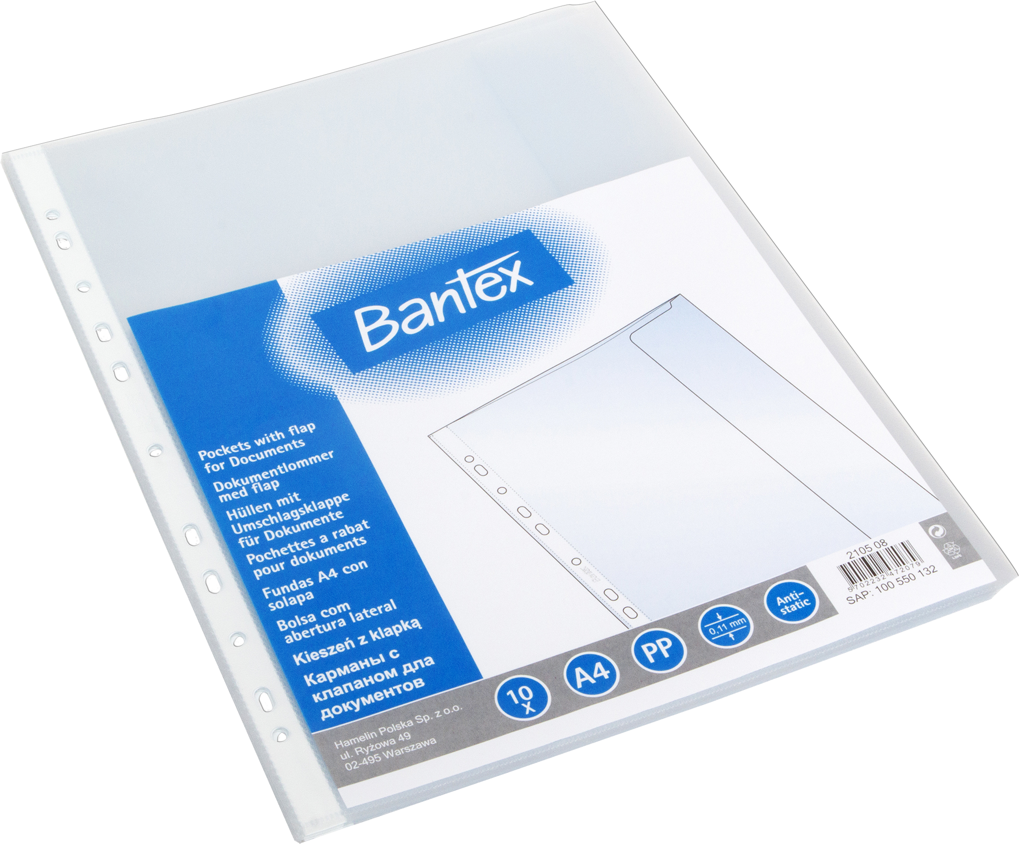 Otwierane z boku; przezroczysta, groszkowa struktura folii; boczna klapka zabezpiecza dokumenty przed wypadaniem; wykonane z folii pp 110 mic.; Umożliwiają przechowywanie dokumentów w obwolutach.