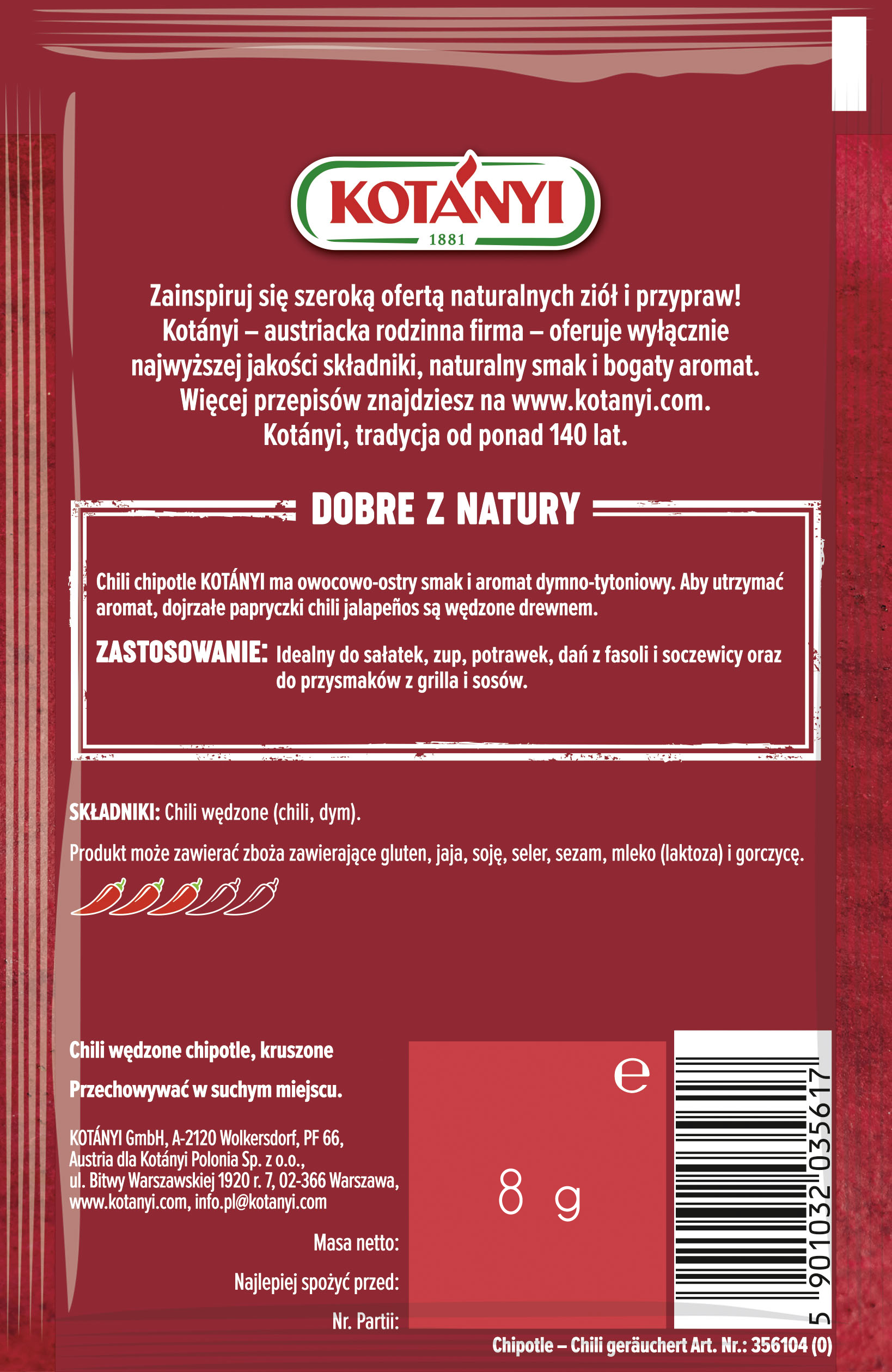 | Składniki | Chili wędzone chipotle kruszone |