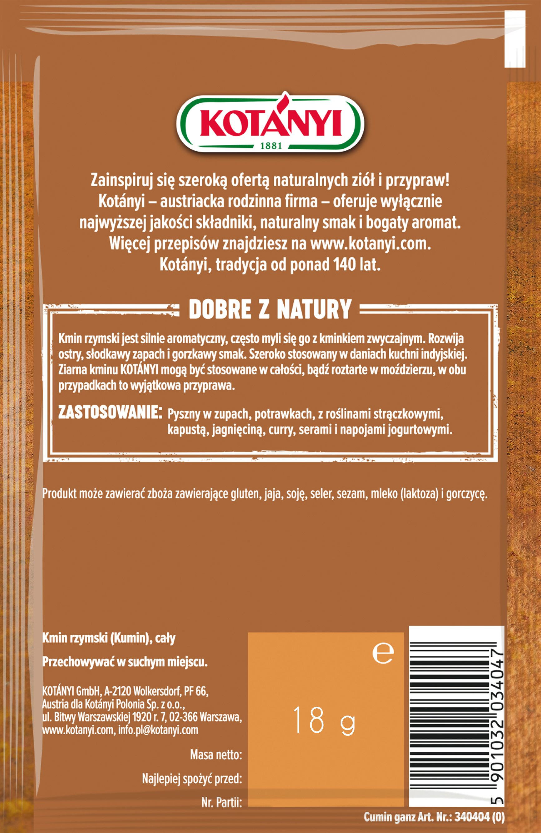 | Składniki | Kmin rzymski cały |