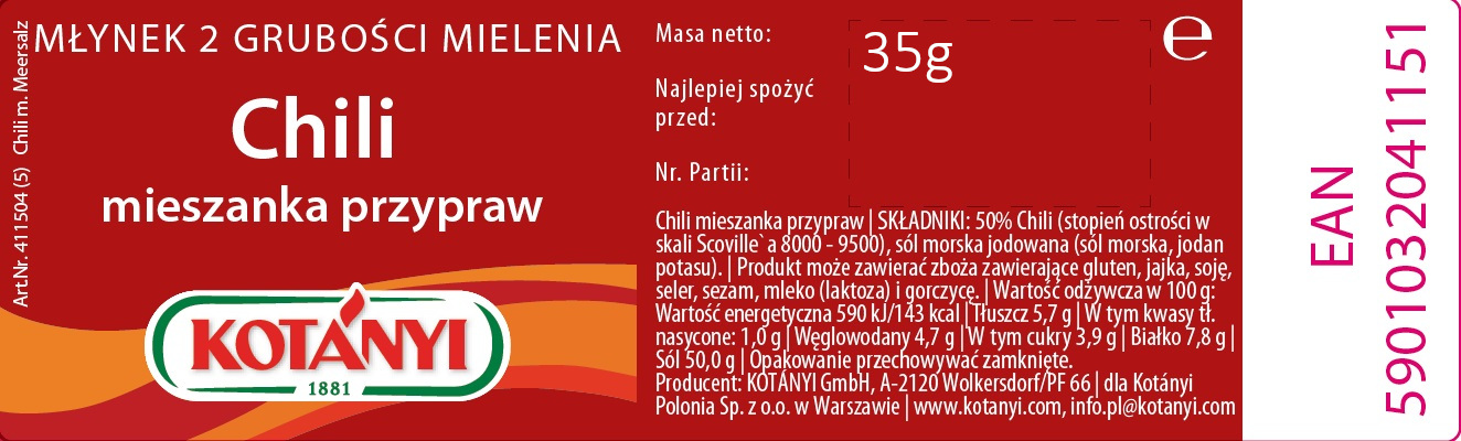 | Rodzaj przyprawy | Chili |