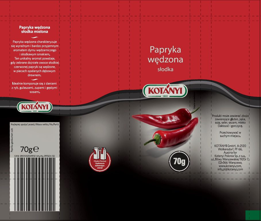 Dzięki ponad 120-letniemu doświadczeniu oraz dążeniu do najwyższej jakości firma Kotányi stała się specjalistą numer 1 w produkcji papryki. "Papryka słodka Kotányi" - najwyższa jakość firmy Kotányi. Wykorzystujemy tylko paprykę uprawianą w najbardziej sprzyjających warunkach klimatycznych. W procesie zbierania owoce papryki są poddawane bardzo szczegółowej selekcji. Lekko słodka nuta oraz intensywny kolor sprawiają, że "Papryka słodka Kotányi" jest niepowtarzalna.