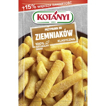 Wszystko zaczęło się w 1881 r. od Janosa Kotányi i papryki. Wkrótce dołączyły inne drogocenne przyprawy i zioła z całego świata. Dziś, tak samo jak przed laty, są naszą największą pasją. Dlatego używamy wyłącznie najlepszych składników, aby uzyskać niepowtarzalny aromat Kotányi. Dla 100% smaku i bogatego aromatu. Ze skórką lub bez, plasterki lub ćwiartki, wszystkie kształty ziemniaków przyprawisz mieszanką do Ziemniaków KOTÁNYI w mgnieniu oka. Niepowtarzalna kompozycja ziół i przypraw, takich jak rozmaryn i tymianek oraz cebula i czosnek, jest gwarancją udanego dania. // Zastosowanie: do ziemniaków smażonych, zapiekanek ziemniaczanych, ziemniaków pieczonych lub frytek. Chrupiące ćwiartki ziemniaczane // Porcja dla 4 osób: // 800 g ziemniaków // 4 łyżeczki Przyprawy do Ziemniaków KOTÁNYI // 4 łyżki oliwy z oliwek Przyrządzenie: Umyj ziemniaki i pokrój je w ćwiartki. Włóż ziemniaki do miski i dodaj olej, wymieszaj całość. Następnie dodaj przyprawę do ziemniaków KOTÁNYI i ponownie wszystko wymieszaj. Umieść ziemniaki na blasze do pieczenia wyłożonej papierem do pieczenia. Piecz całość przez około 30 minut, w rozgrzanym piekarniku w temperaturze 180 stopni (termoobieg). Wskazówka: aby uzyskać wyjątkowo chrupiące ziemniaki na ostatnie 2 minuty włącz funkcję grilla.