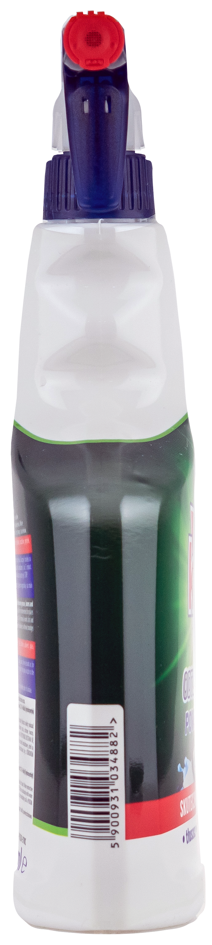 | Sposób użycia | Naciśnij górną blokadę i ustaw dyszę spryskiwacza w pozycji sprysku. rozpyl środek na czyszczoną powierzchnię i zostaw na kilka sekund lub, w przypadku cięższych zabrudzeń, do 5 minut. następnie wyczyść, spłucz i wytrzyj. po każdym użyciu przekręcić dyszę spryskiwacza na pozycję stop. nie rozpylać na tekstylia, matowe/trawione szkło, drewno, linoleum. przed użyciem wypróbuj na mało widocznej powierzchni. |