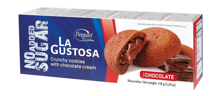 LA GUSTOSA Kruche ciasteczka z kremem czekoladowym bez dodatku cukru.