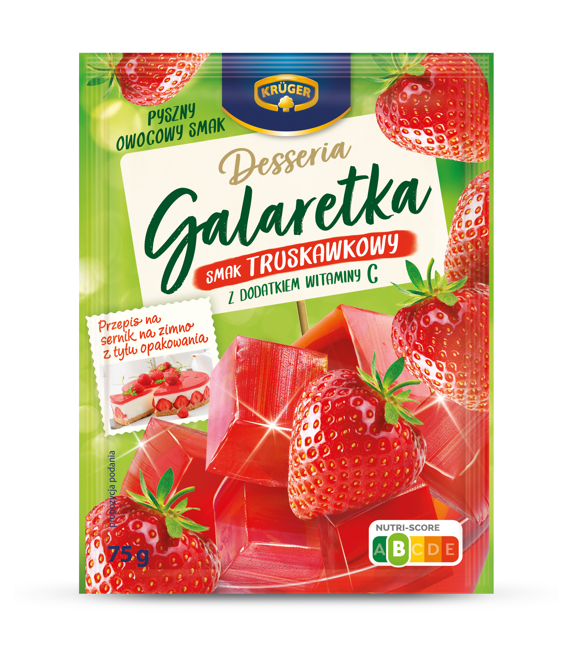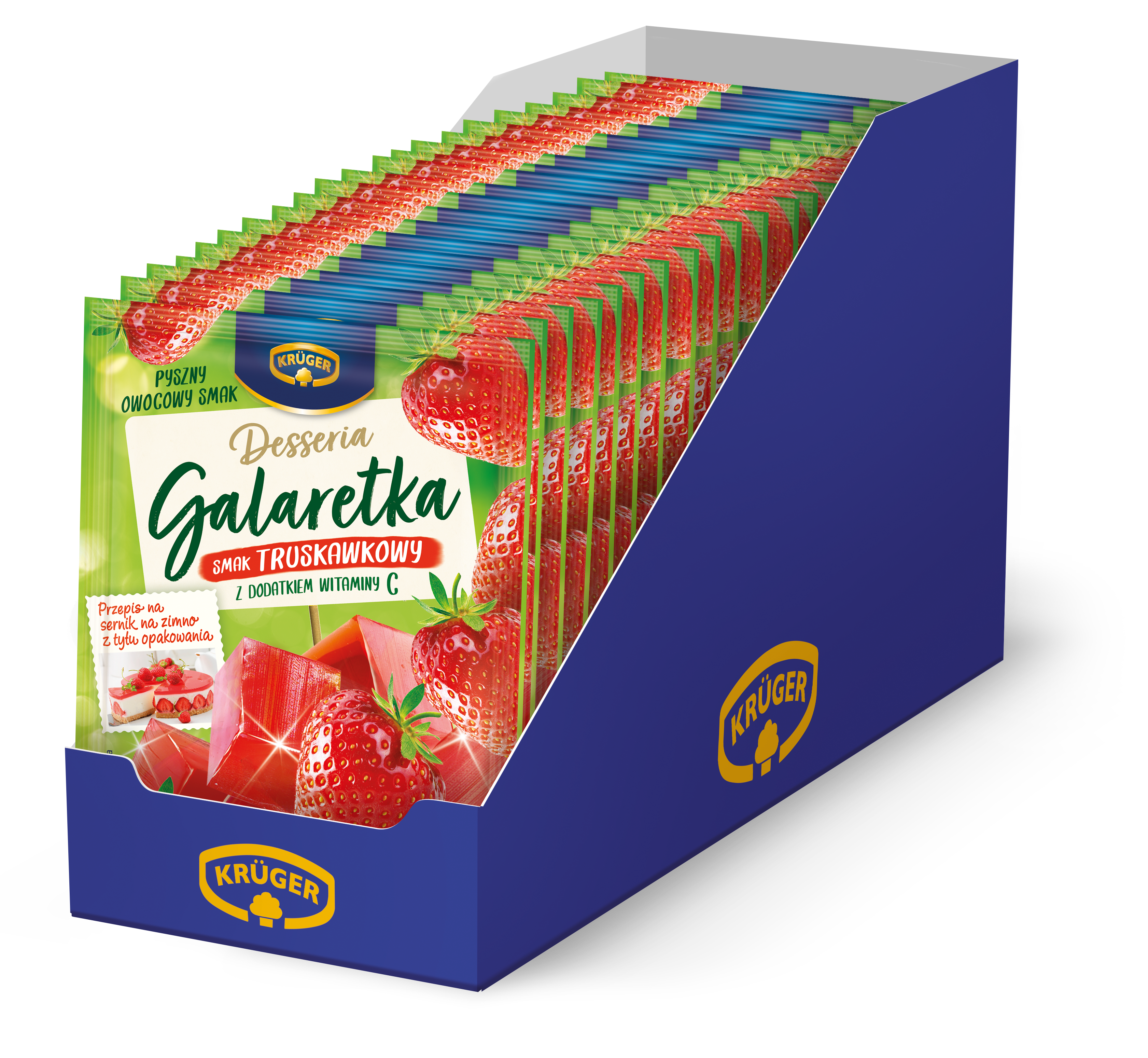 | Składniki | Cukier, żelatyna wieprzowa, regulator kwasowości - kwas cytrynowy; suszony koncentrat z truskawek (0,2%); kwas l-askorbinowy (wit.c); aromat, barwnik - kurkumina i antocyjany. |
