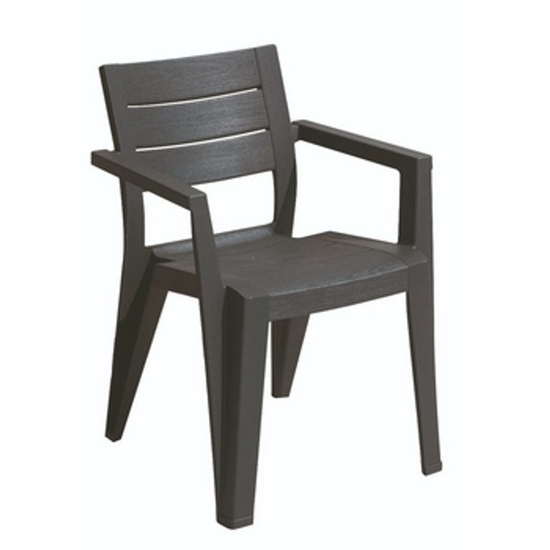 Nowoczesny wzór pasuje do wielu rodzajów stołów, a krzesła można wkładać jedno w drugie - oto główne zalety wygodnych krzeseł Julie. Łatwe czyszczenie, brak wymogu konserwacji i ochrona przed niekorzystnymi warunkami atmosferycznymi.