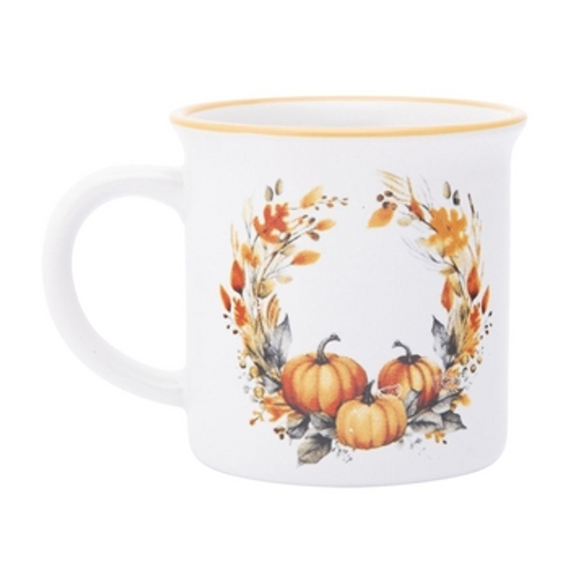 Jesień zamknięta w kubku - dosłownie. Subtelny wieniec zbożowych kłosów, liści i dyni otula ten 320ml kubek ceramiczny w ciepłym, rustykalnym stylu. Pomarańczowy rant dodaje mu uroku i idealnie wpisuje się w sezonowy klimat. To świetny wybór na herbatę z imbirem, kakao z piankami albo po prostu - chwilę oddechu z ulubionym napojem. Pasuje do kuchni pełnej domowego ciepła i dekoracji w naturalnych tonacjach.