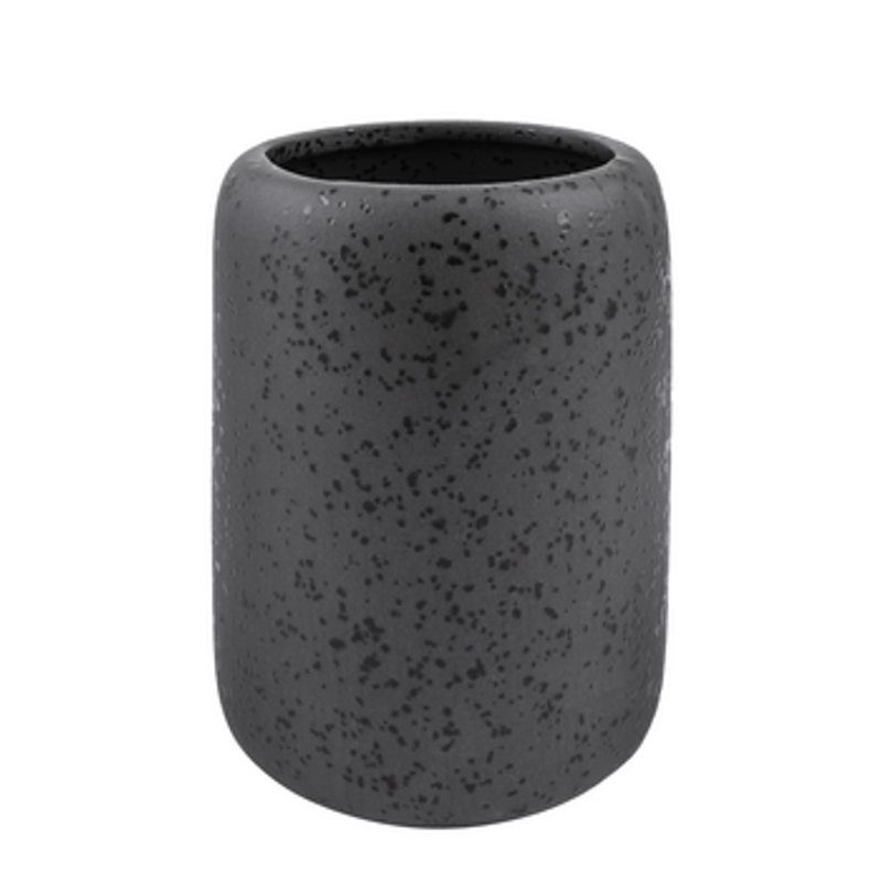 Materiał: kamionka. Kubeł łazienkowy z serii Hades. Wykonany został z kamionki w kolorze ciemnego, matowego antracytu. Posiada nieregularne, nakrapiane plamki w kolorze czarnym, które nadają mu niezwykłego charakteru.