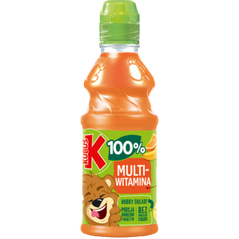 | Składniki | Soki z zagęszczonych soków z: jabłek (70%), marchwi (12%) i pomarańczy (10%), przeciery z: jabłek (3%), bananów (2%), brzoskwiń (0,01%), gujawy (0,05%) i papai (0,05%), soki z zagęszczonych soków z: ananasów (2%), mango (0,5%), marakui (0,1%), liczi (0,05%), figi kaktusowej (0,05%), kiwi (0,05%), i limonek (0,05%), witaminy: a, e, c, tiamina, ryboflawina, niacyna, b6, kwas foliowy, b12, biotyna i kwas pantotenowy. |