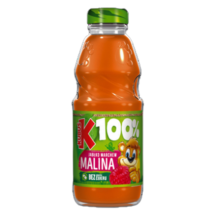 Kubuś jabłko marchew malina to zdrowa kompozycja owoców i warzyw, pozbawiona konserwantów i pełna cennych witamin. Idealna propozycja do szkoły, na drugie śniadanie.