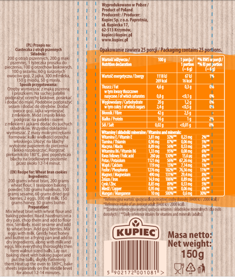 Kupiec Otręby pszenne 150 g