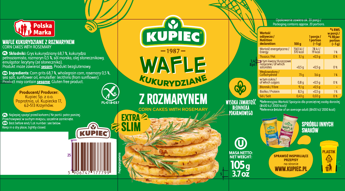 Kupiec wafle kukurydziane z rozmarynem 105 g