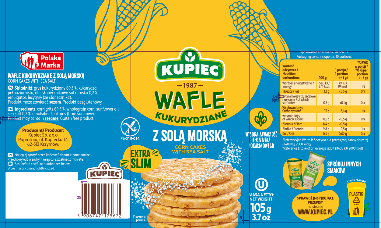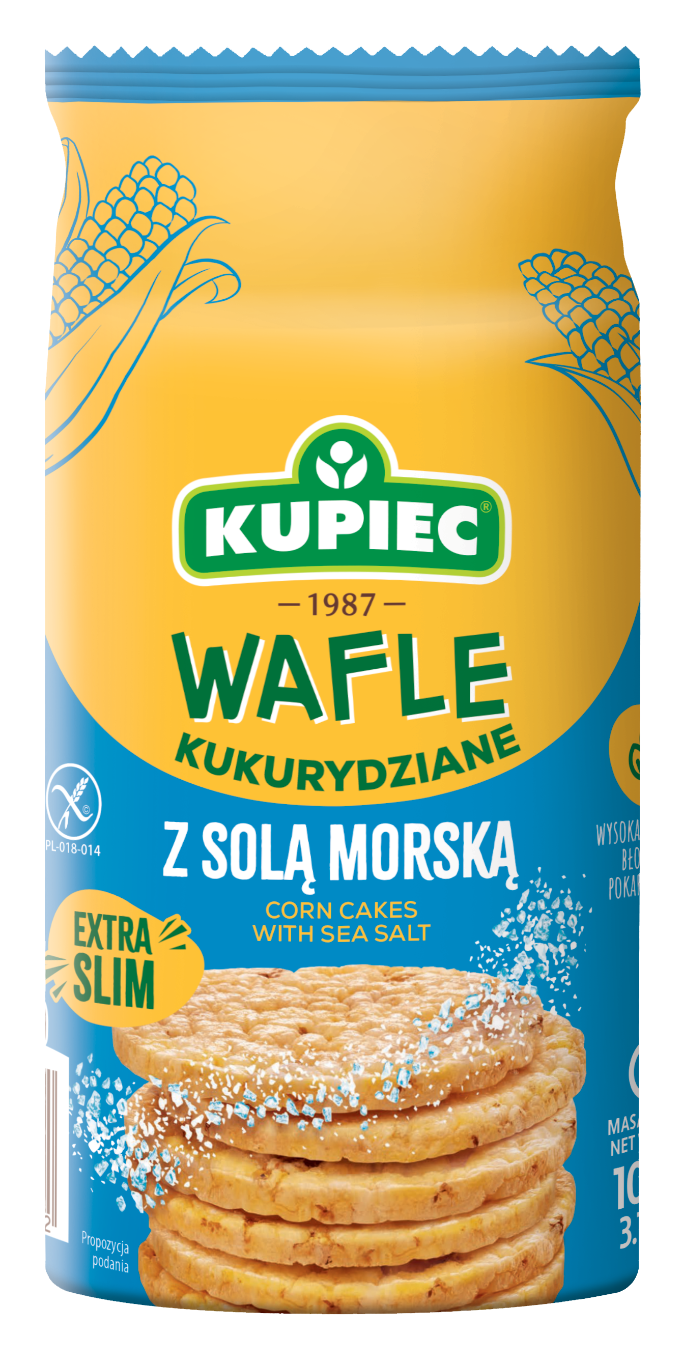 Wafle kukurydziane z dodatkiem soli morskiej, w których wykorzystano pełnoziarniste ziarna kukurydzy, a także grys kukurydziany. Oznacza to, że wafle można traktować jako dobre źródło błonnika pokarmowego. Spożywając 100 g wafli dostarczymy więcej błonnika pokarmowego niż spożywając 100 g chleba żytniego pełnoziarnistego (w walach z solą morską – 7,5 g, w chlebie – 6,1 g). Błonnik pokarmowy pozwala utrzymywać stężenie cholesterolu na właściwym poziomie. Wafle idealnie nadają się na lekko słoną przekąskę znacząco zdrowszą niż inne słone przekąski oferowane na rynku.