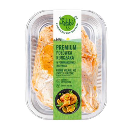 Kurczak sielski połówka kurczaka w marynacie pomarańczowej wyrób mięsny z dodaną wodą, schłodzony. ok. 1 kg