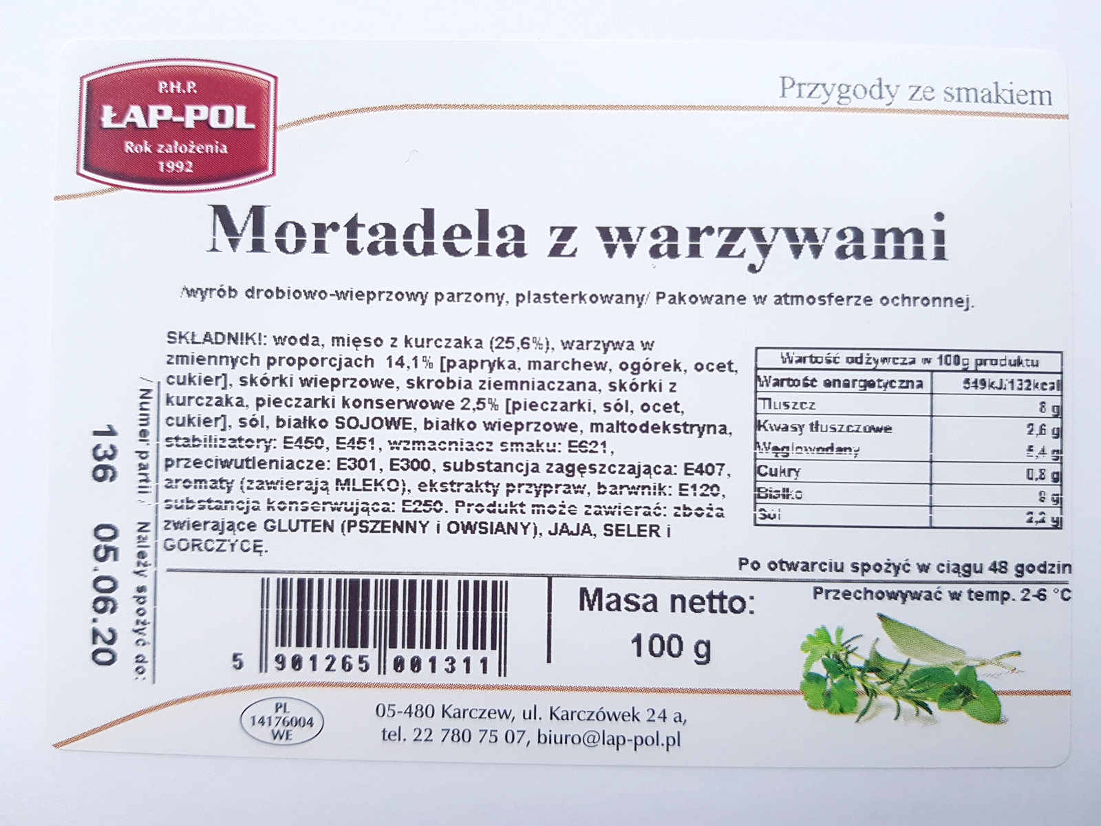 Bardzo bogata w warzywa konserwowe mortadela drobiowa. Super doprawiona, od lat niezmiennie dobra. Polecam