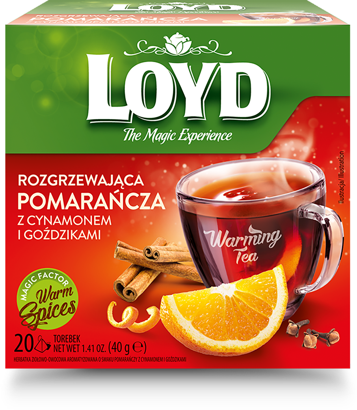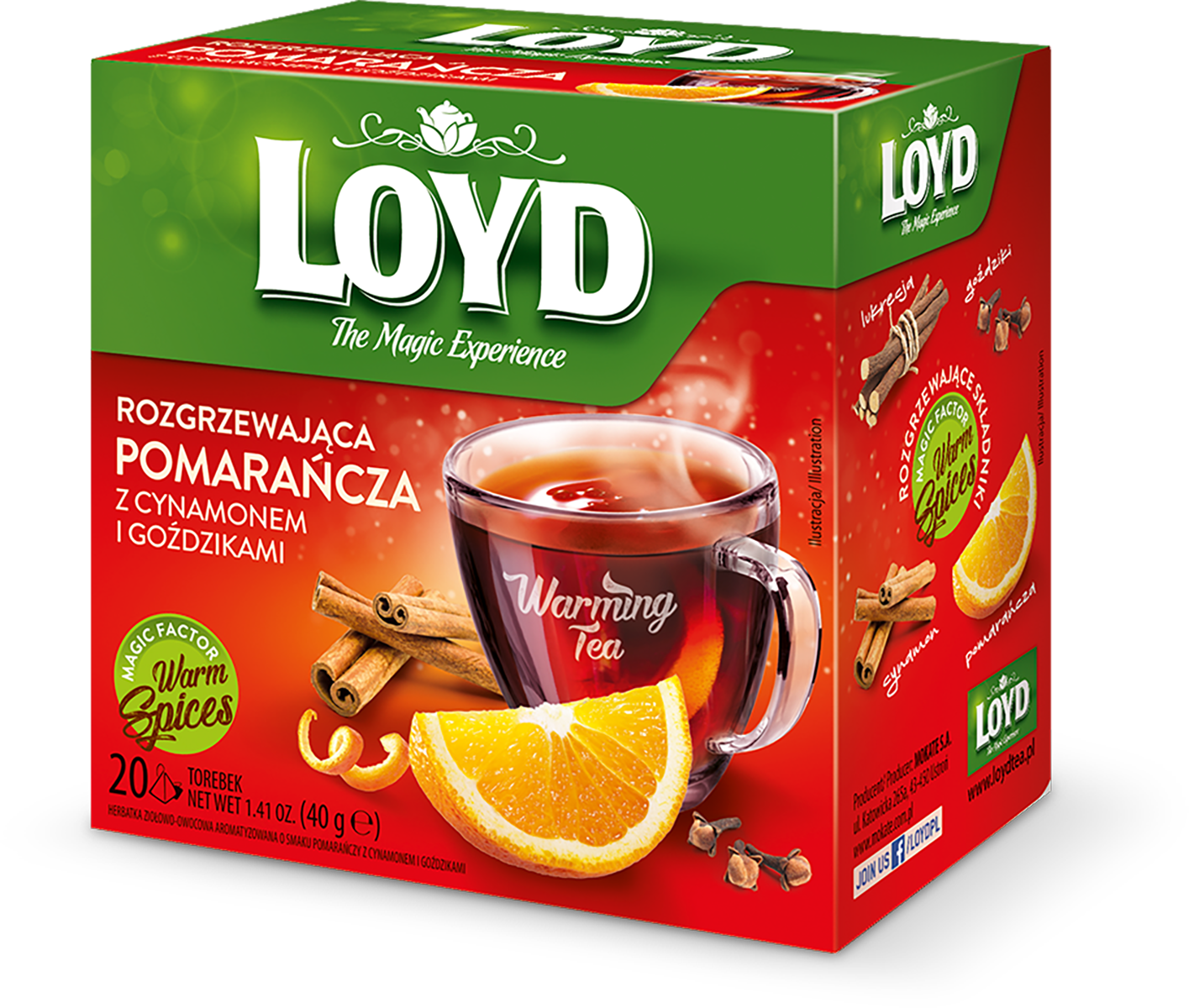 Warming Tea Rozgrzewająca POMARAŃCZA to promienie słońca zamknięte w owocu pomarańczy doprawione aksamitnym cynamonem oraz aromatycznymi goździkami, a do tego cudowna słodycz z korzenia lukrecji. Ten tercet to idealne towarzystwo na chłodne jesienno-zimowe dni.