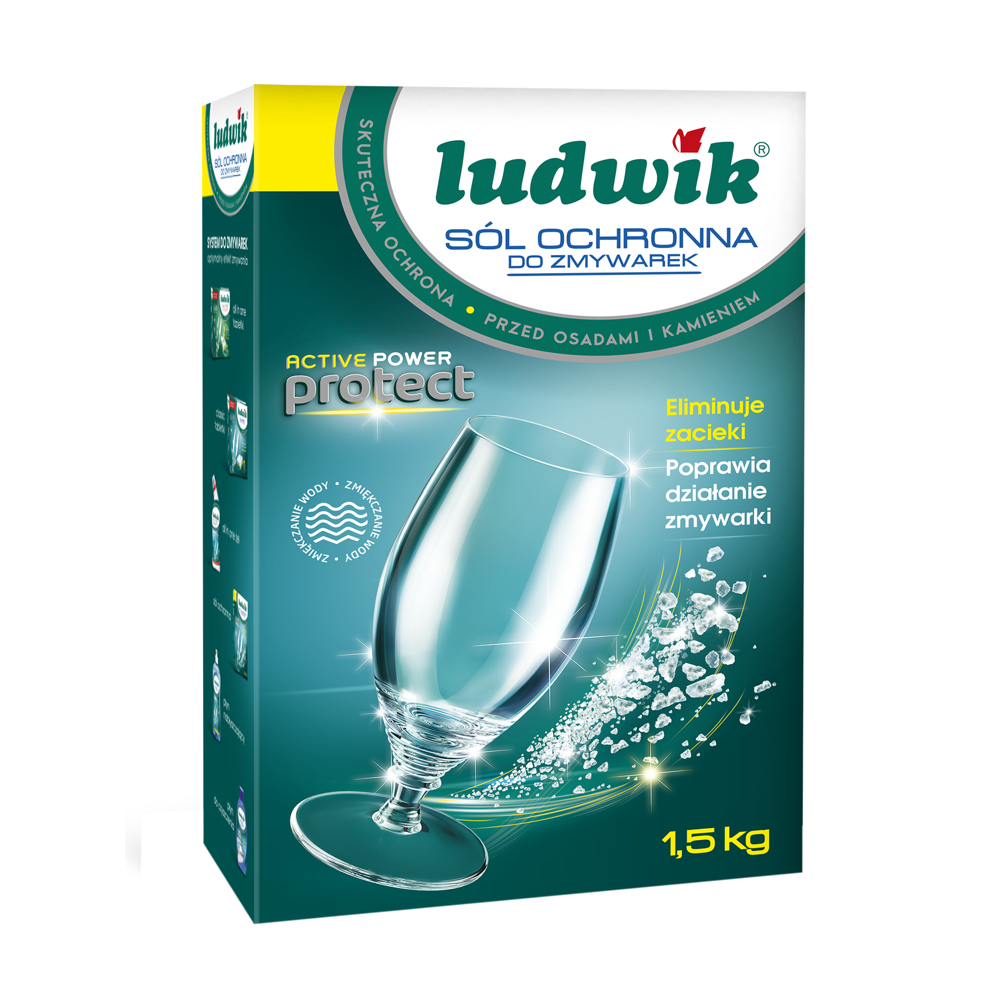 Sól ochronna do zmywarki Ludwik kompleksowo o nią dba. Chroni przed osadzaniem się kamienia w zmywarce i na naczyniach. Skutecznie zmiękcza wodę, dzięki czemu efekty mycia naczyń są znacznie lepsze.
