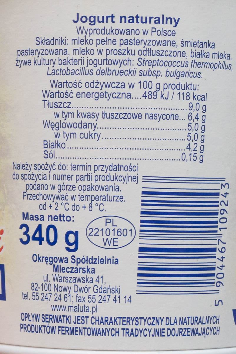 | Składniki | mleko pełne pasteryzowane |