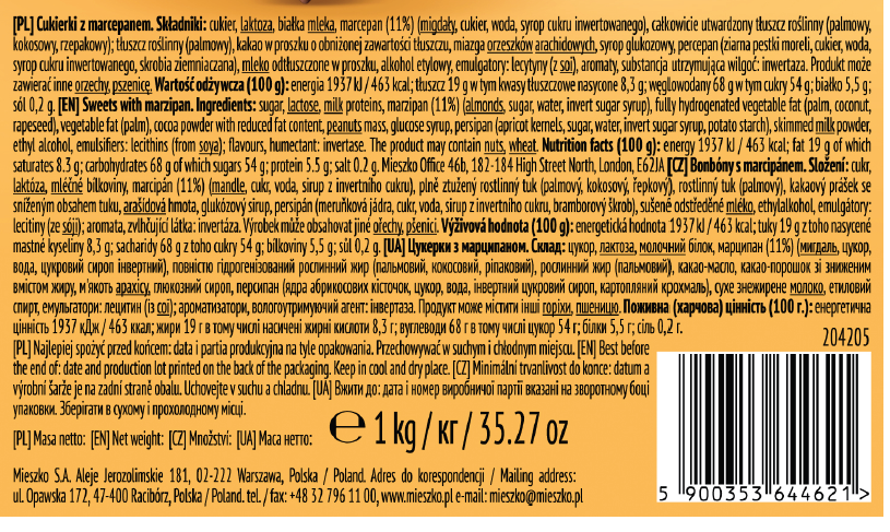 | Krótki opis marketingowy | Cukierki z marcepanem. |